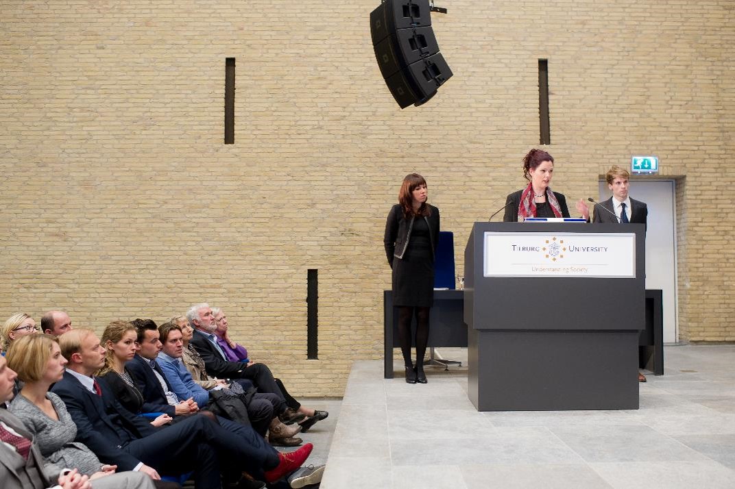 Voordat ik echt aan de verdediging van mijn proefschrift zou beginnen, mocht ik nog in het kort mijn proefschrift presenteren: het lekenpraatje. Daarin heb ik 5 jaar onderzoek en studie in 10 minuten platgeslagen… en dat ook nog eens in niet-academische gewauwel, maar begrijpbare taal (in het Nederlands nog wel!). Dat ging prima – veel mensen vertelden me achteraf dat ze nu pas door hadden wat ik nu eigenlijk in Tilburg deed…! Dat had ik ze toch eens eerder moeten vertellen!