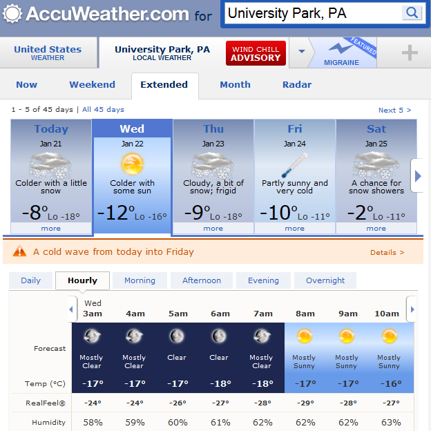 Dat is ook van belang hier. State College is een zeer opgeruimd stadje. De gemeente hier heeft dan ook regels ten aanzien van de lengte van het gras (je MOET grasmaaien, en anders huur je maar iemand in). En ook zijn er regels ten aanzien van het sneeuwruimen (je MOET de sneeuw van de stoep afhalen, en anders huur je maar iemand in). Nu vind ik grasmaaien niet zo erg, hoewel, eerlijk zijn, doet Michiel dat 99 van de 100 keer bij ons thuis. Daar heb ik geen problemen mee, dat luistert ook niet zo nauw, kan best een dag wachten. Maar die sneeuw, dat moet binnen 24 uur nadat de sneeuw is gevallen weggehaald. En aangezien de sneeuw hier in een bocht om het huis moet worden weggehaald, is dat heel erg veel werk. Daarbij – zo’n berg sneeuw weghalen in deze vreselijke kou is gewoon geen pretje. De eigenaren van het huis hebben ‘snow removal service’ en daar maak ik met alle plezier gebruik van. Het alternatief is dat mijn handen en voeten er af vriezen.