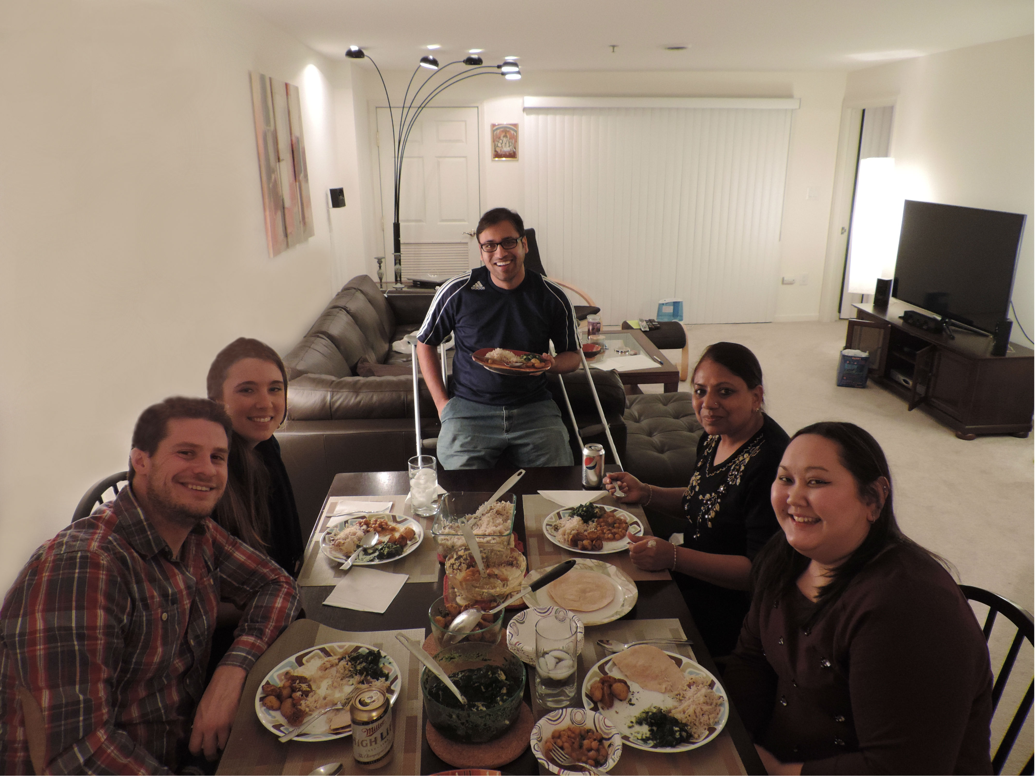 Afgelopen vrijdag ben ik wezen eten bij Pranav. Vanwege zijn operatie is zijn moeder uit India overgekomen, zij blijft hier een week of zes, zeven. Dat was een mooie gelegenheid voor Pranav om een aantal mensen uit te nodigen bij hem thuis, hij gaat zelf toch nergens heen voorlopig. Naast Emma en Peter was ook Jess er, dat is Peter’s vriendin. En het was echt supergezellig!!