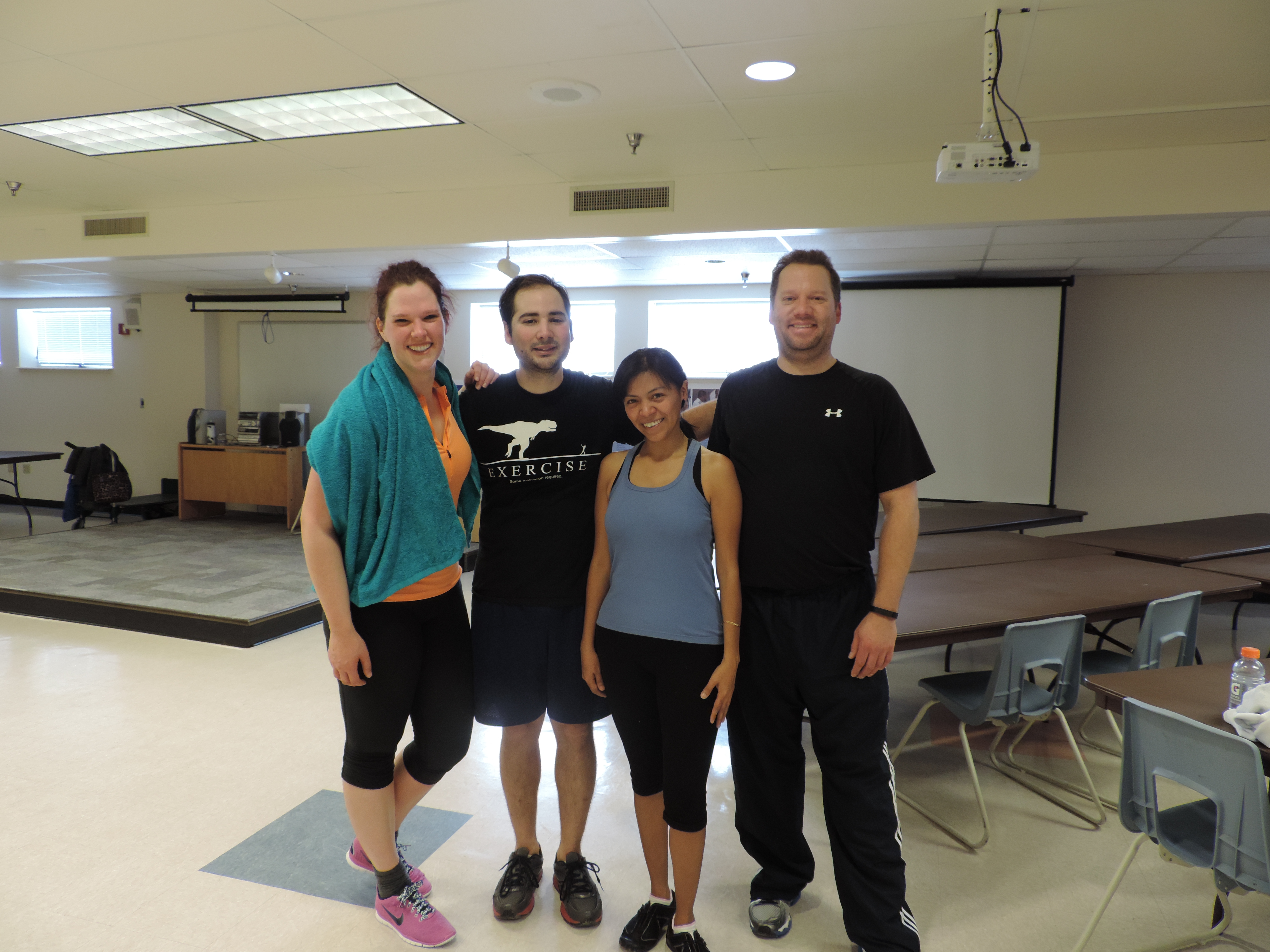 Veronica, een collega bij Supply Chain Management die op dezelfde verdieping zit, had mij uitgenodigd om naar een Zumba-event voor het goede doel (de plaatselijke dierenambulance) te gaan. Twee uur lang, van half 11 tot half 1, zonder pauze, hupsen en springen en dansen… Twee vrienden van Veronica die ook twee weken geleden op het feestje bij Veronica waren, waren er ook. Dat waren Scott , een onderzoeker die zich bezighoudt met geosystemen, en Many, een technische gast die voor een bedrijf werkt dat onderzeeërs maakt.