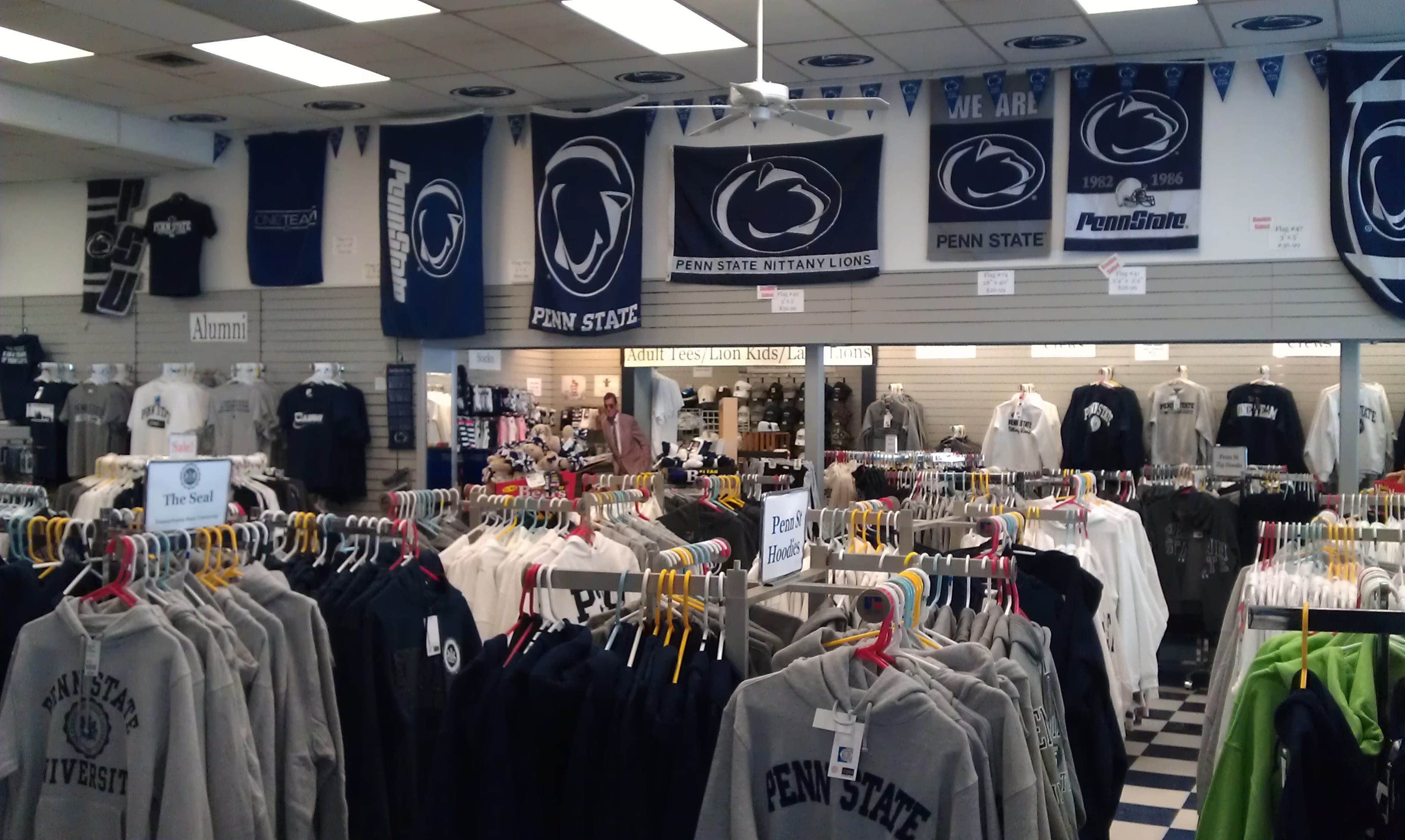 “Mijn” team heet de Nittany Lions. De Nittany Lion (een mountain lion, een bergleeuw) is dan ook de mascotte van PSU. Waarom de Nittany Mountain Lion de mascotte van PSU is vertel ik later een keertje, dat is een verhaal op zichzelf… Hier in State College loopt iedereen in de clubkleuren blauw-wit, en het logo is een soort silhouet van de Nittany Lion. Die is echt niet te missen hier! Hier zijn echt ontzettend veel blauw-witte sporten te vinden: basketball, ijshockey, atletiek (dat heet ‘track and field’) en ook zelfs gewone hockey (fieldhockey heet dat hier), volleybal, tennis, gelukkig ook voetbal zoals wij het kennen, en zelfs sporten als worstelen, lacrosse (ik zou niet eens weten hoe dat eruit ziet), en schermen.
