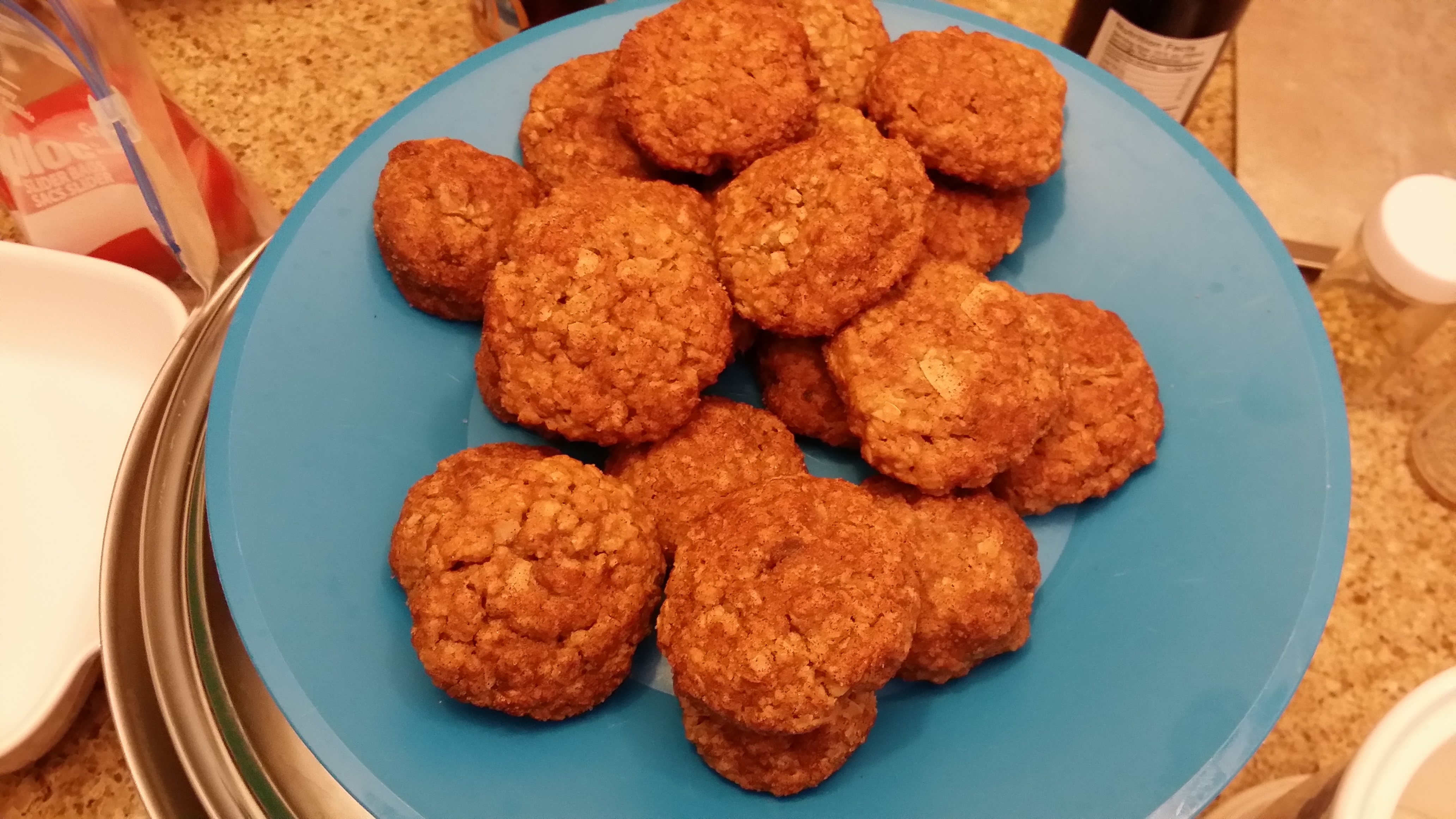 Bij een potluck blijft er altijd wat over. Ik heb de paprika’s die over waren weggeven, in ruil heb ik nu nog een paar ribbetjes in de koelkast, met een paar bakjes saag en een naan-brood, samen met een stapel koekjes!