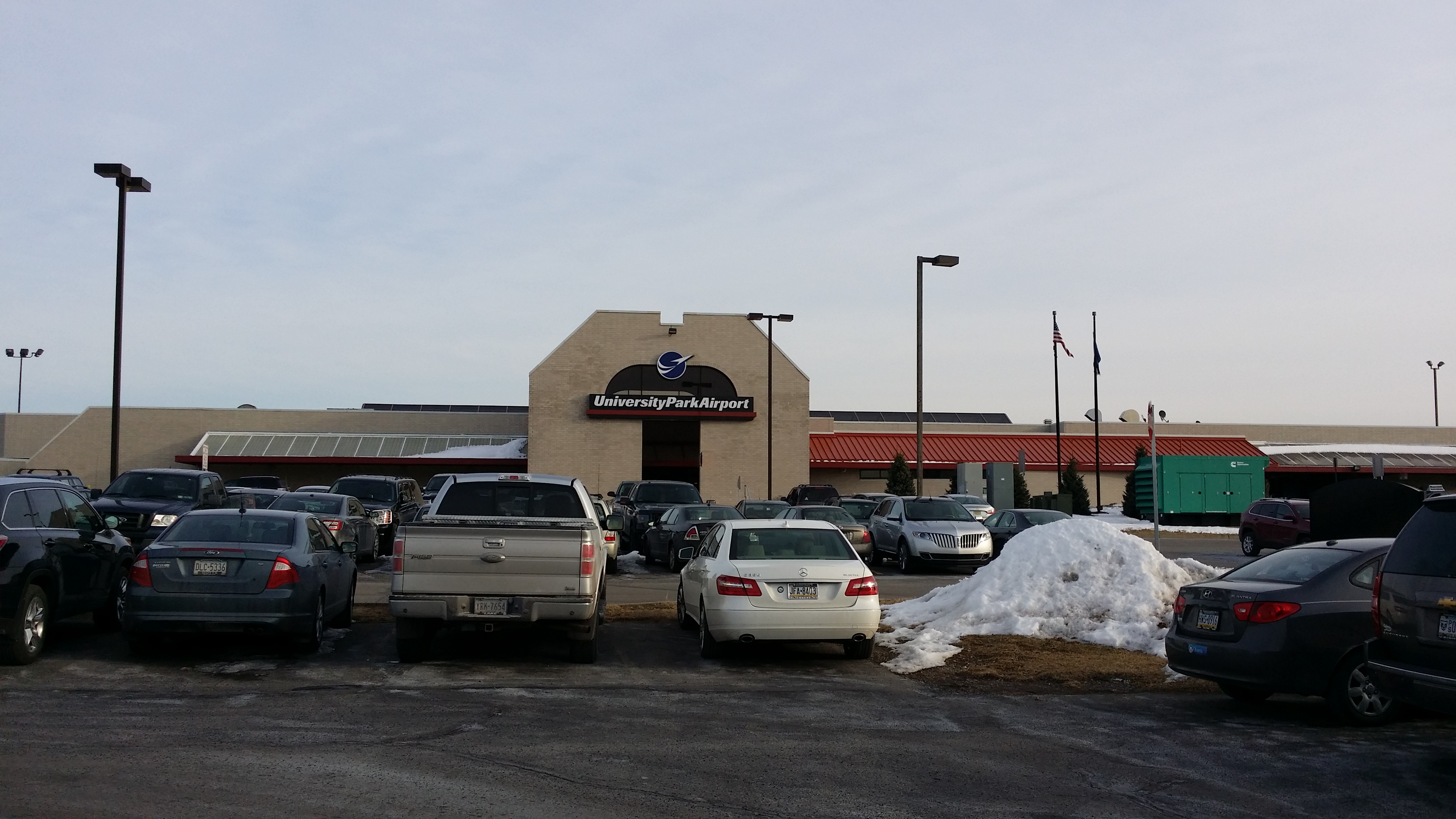 Nu helpt het natuurlijk dat het vliegveld hier in State College ontzettend overzichtelijk is. Je parkeert voor de deur. Je komt binnen. De aankomst- en vertrekhal zijn dezelfde. Er is maar een bagageband. En er landt maar een vliegtuig tegelijk. Het mooiste: als je via internet de vluchttracker volgt, kun je precies uitrekenen hoe laat je op pad moet. Zo zag ik om twintig over vier – toen was ik nog op de business school – dat Michiel’s vliegtuig een kwartier eerder zou landen. Ik dus snel op de fiets naar huis, en vervolgens snel in de auto naar het vliegveld. Onderweg zag ik Michiel’s vliegtuig landen. In de tijd die het kostte om uit te stappen kon ik precies naar het vliegveld rijden, parkeren en naar de aankomsthal lopen. Vervolgens heb ik Michiel opgehaald, hebben we z’n koffer van de band getrokken en zijn we naar de auto gelopen. Ik was nog geen 13 minuten geparkeerd.