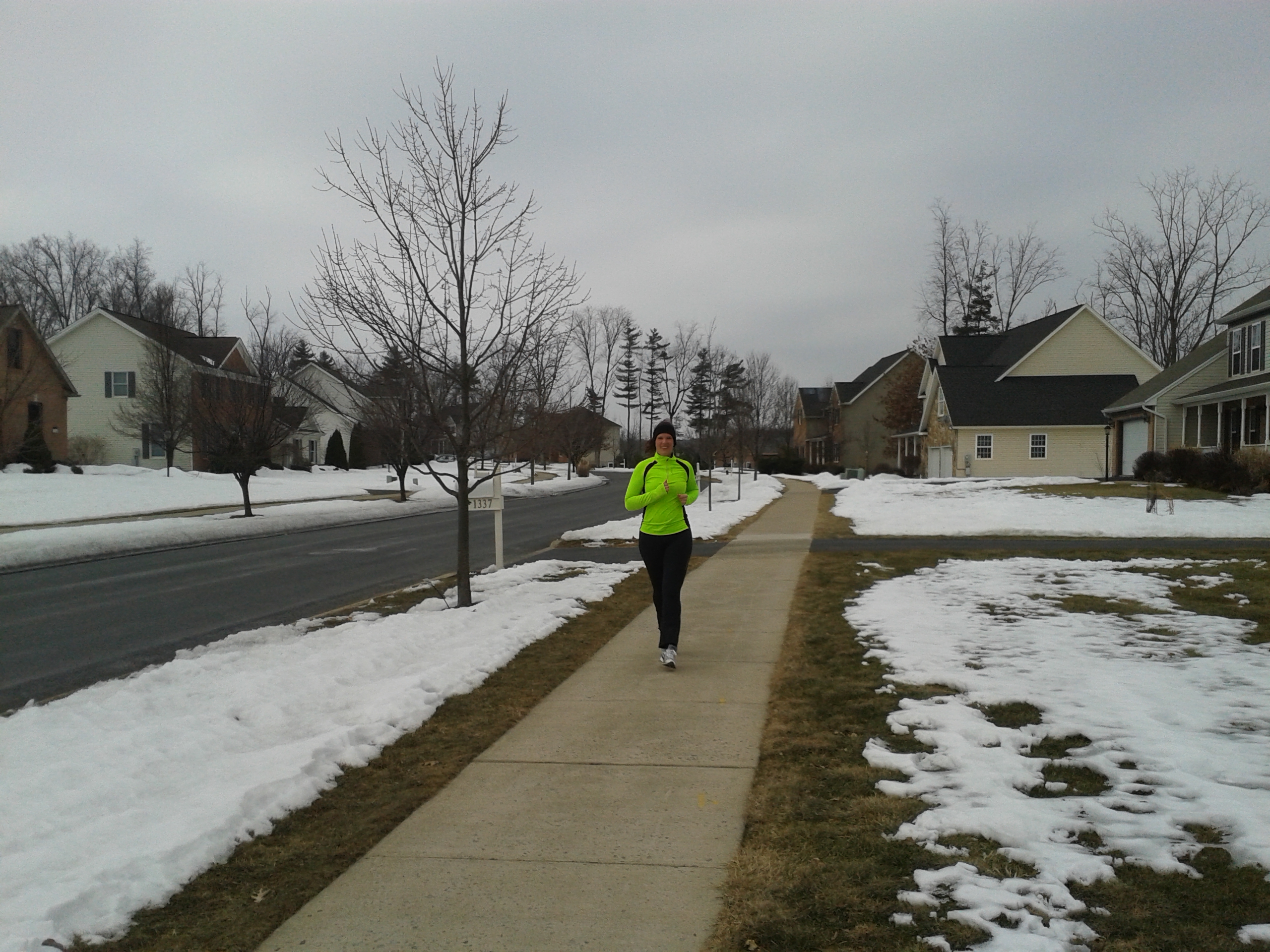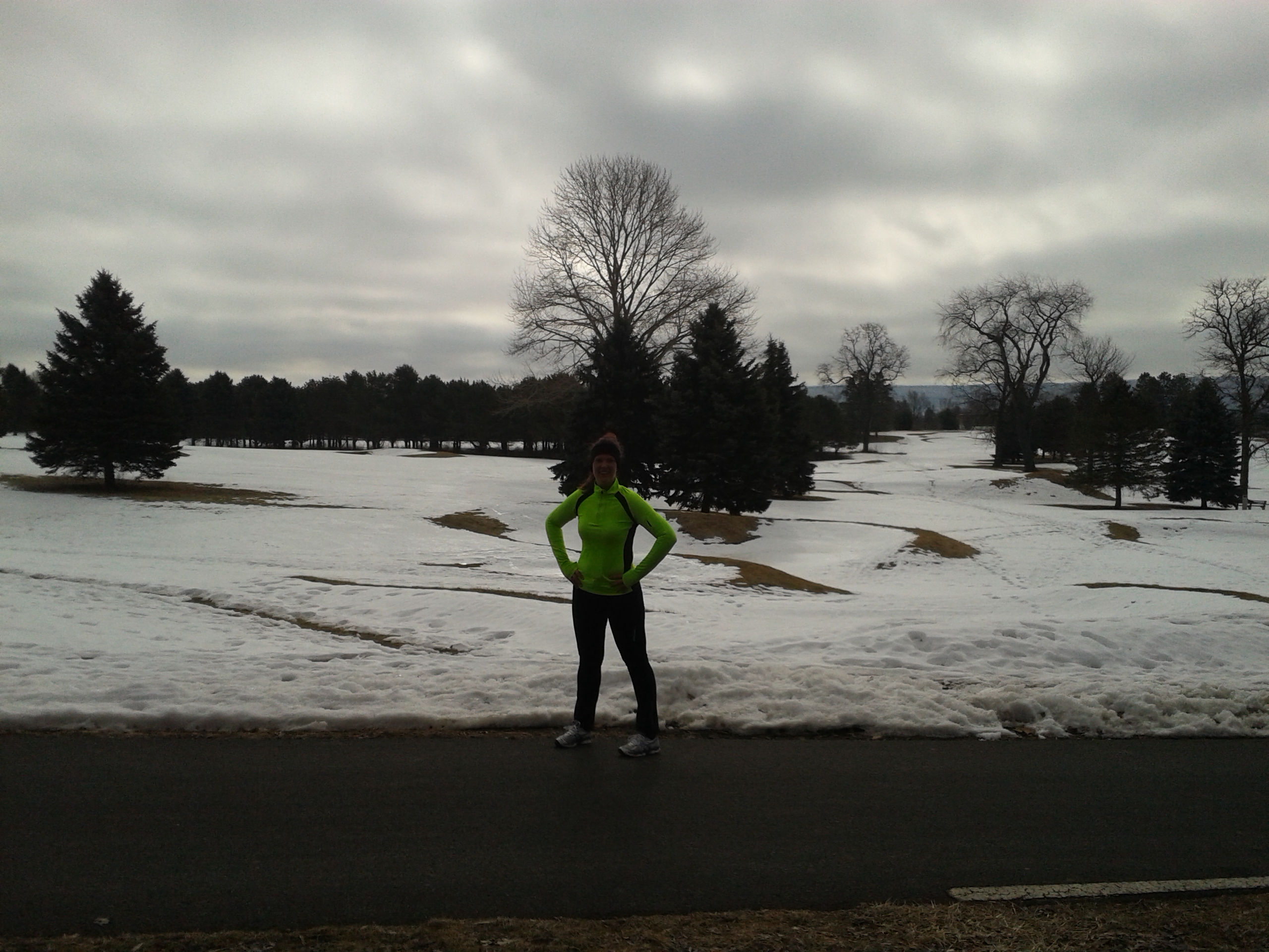 En wat doe je dan? Dan ga je buiten hardlopen (nou ja, ik ga joggen, Michiel gaat hardlopen), liefst op de golfbaan naast de deur. Ik heb hier twee keer eerder buiten (kunnen) hardlopen, telkens was er sneeuw, en dan is het hardlopen gewoon gevaarlijk. Veel te glad…