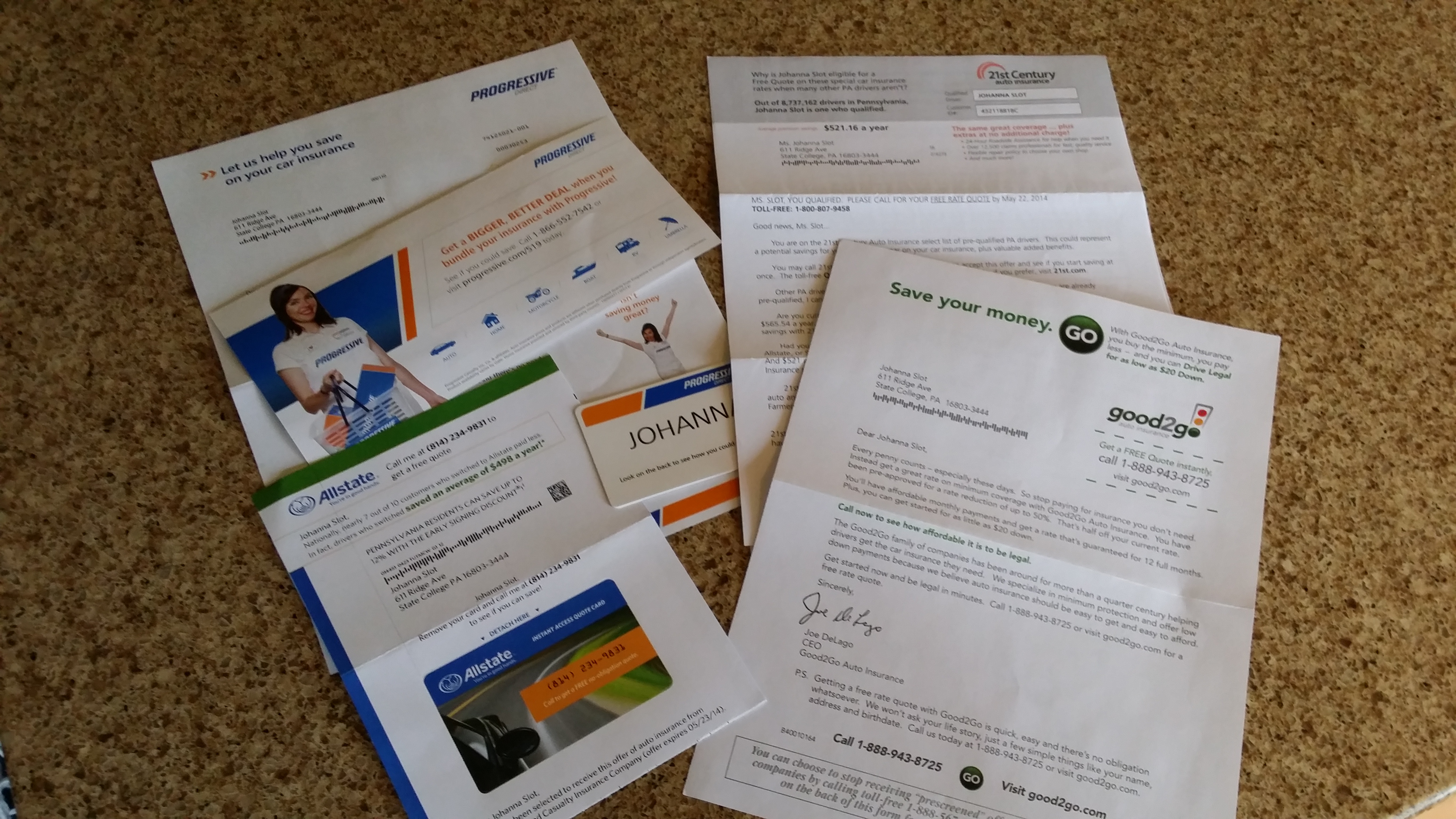 En nu ben ik ook de pineut. Nog op mijn tijdelijke adres weten verzekeringsmaatschappijen waarvan ik nog nooit eerder had gehoord mij te vinden. Opvallend: op een enkele dag kreeg ik drie enveloppen voor autoverzekeringen binnen. Ik weet honderd procent zeker dat dat te maken heeft met mijn huis en de woonverzekering en hypotheek die ik heb aangevraagd. Hoezo, privacy? Het is hier nog erger dan in Nederland!