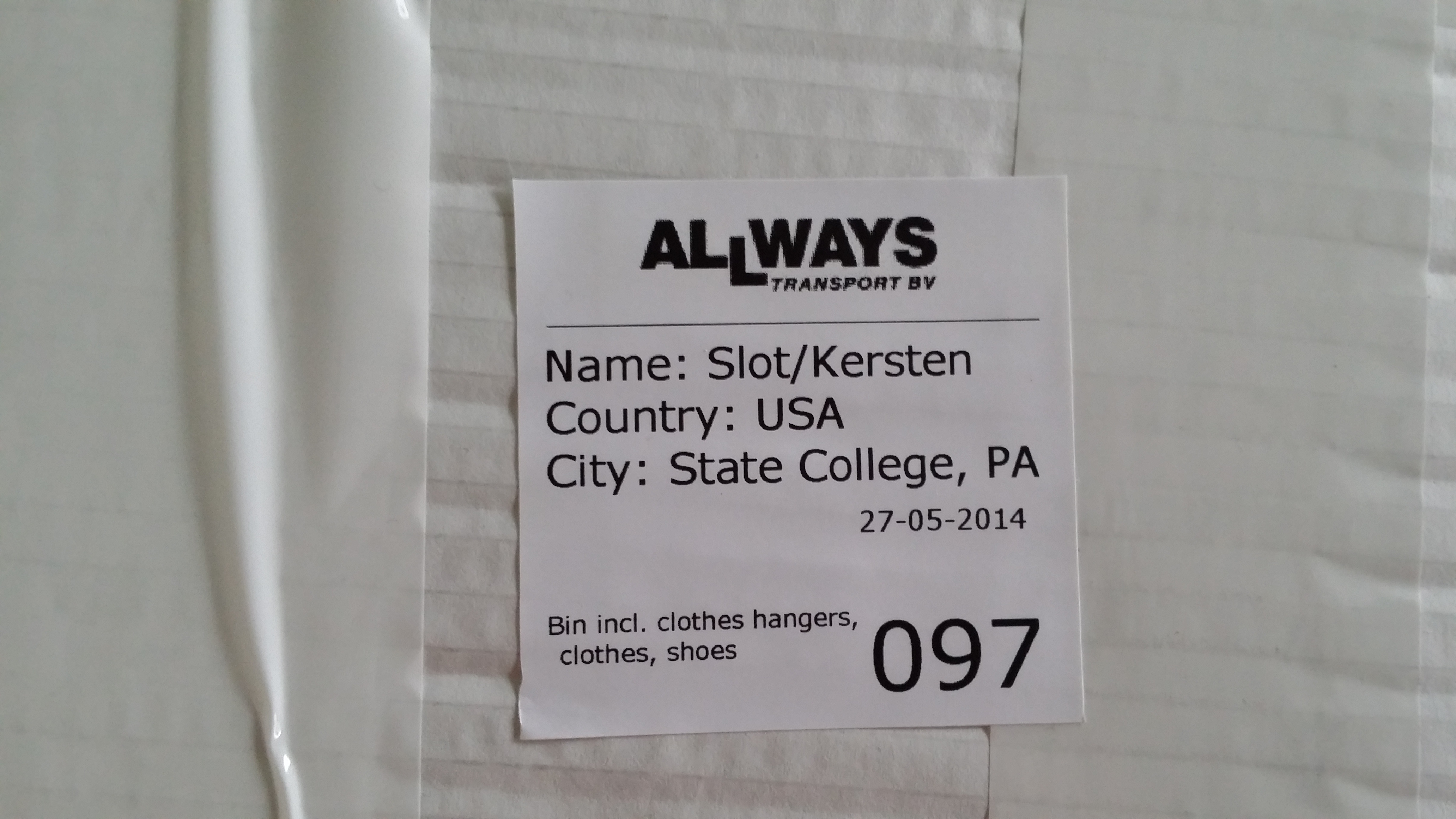 Onze spullen zitten in totaal 97 verpakkingen. En alles is gestickerd. Dit was de laatste….