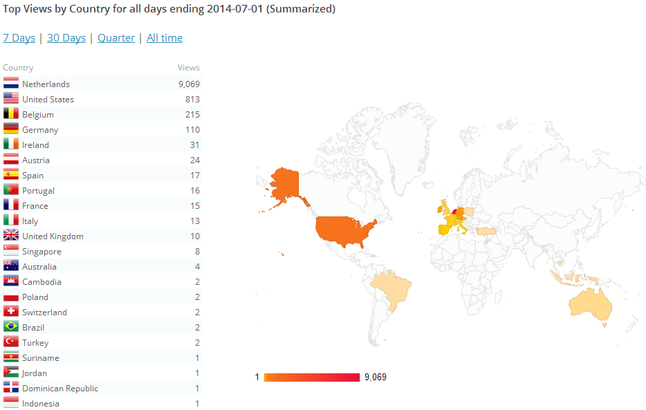Ik vermoed dat het met de onderwerpen te maken heeft. Zodra ik schreef over de ‘humidifier’ (en dat is een Engels woord) kreeg ik meer buitenlandse bezoekers. Hetzelfde bleek toen ik schreef over de Mazda3 (die heet ook overal hetzelfde). Dat is beter internationaal vindbaar – en dan krijg ik schijnbaar meer bezoekers van over de grens.