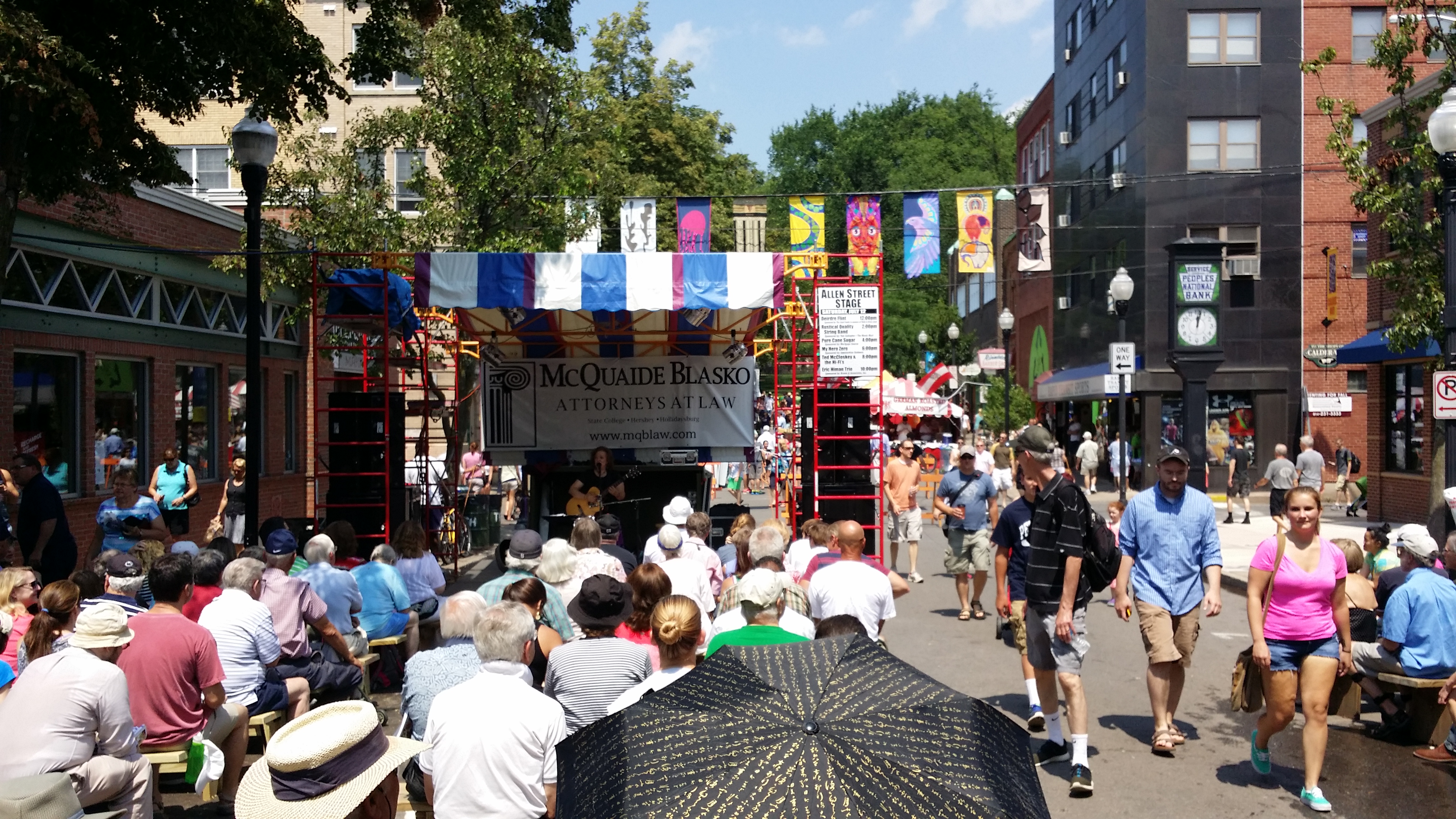 Maar dat was tijdens het Arts Fest wel even anders. Het was zo ontzettend druk downtown dat het haast niet meer leuk was. Straten afgesloten, en dus was het even puzzelen hoe ik moest rijden (ook al omdat er nogal wat eenrichtingsverkeer in downtown State College is…). Volle restaurants en bars, dus was het zoeken naar een plek waar we voetbal konden kijken. Ik kreeg een beetje een Kloostermarkt-gevoel, eerlijk gezegd!