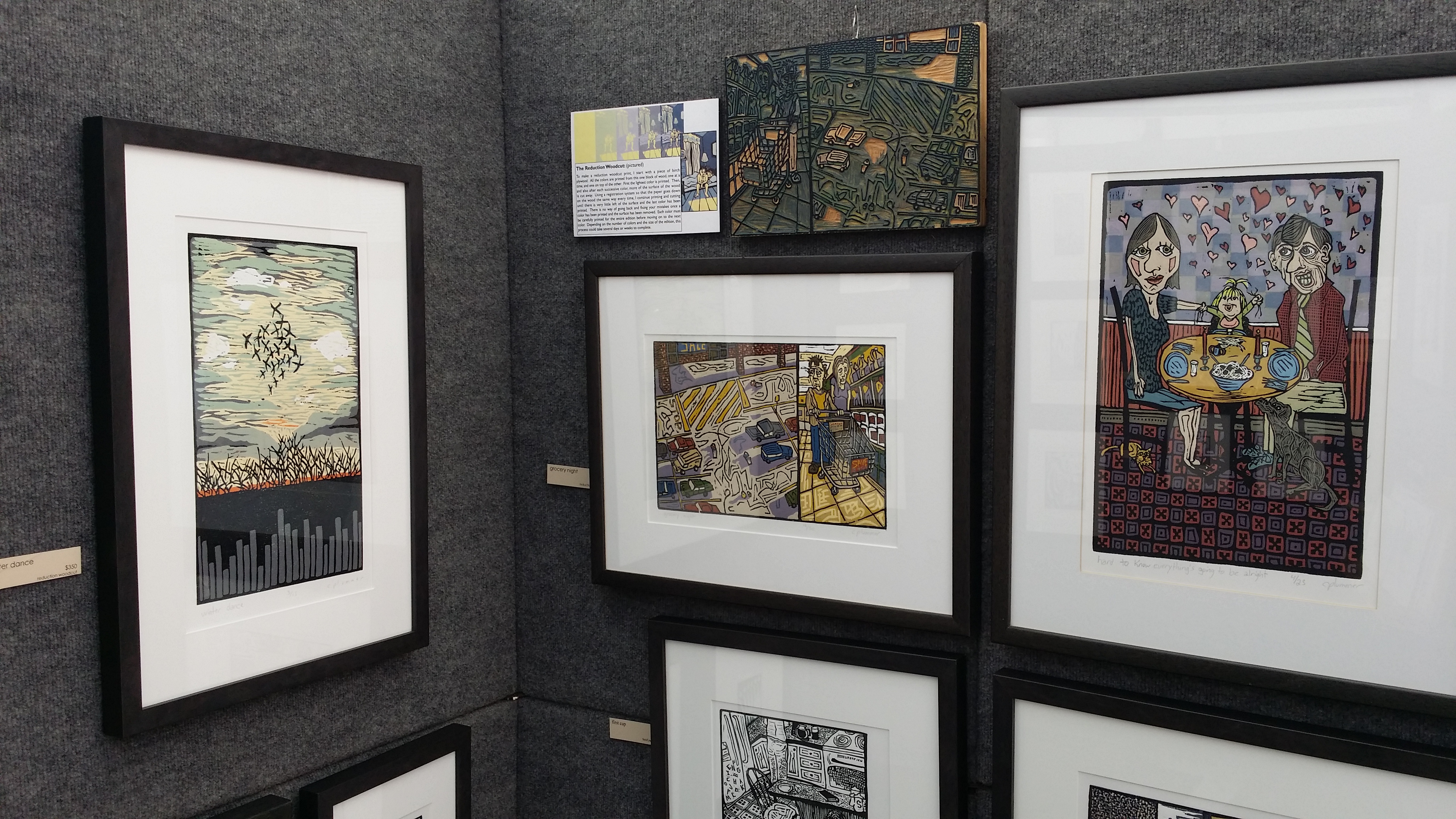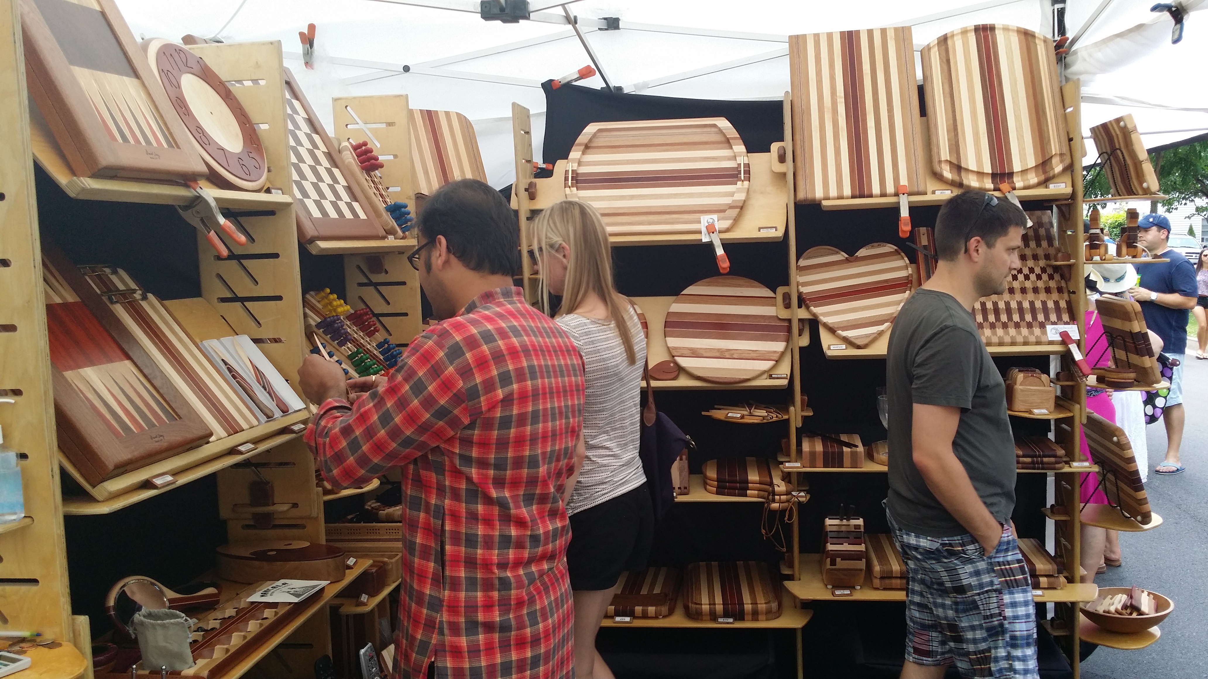 De meeste kunstenaars die ik heb gevraagd waar ze vandaag kwamen, wonen in Pennsylvania of naburige staten (zoals New York), maar ik ben ook iemand uit Quebec (Canada) tegengekomen. Sommige kunstenaars waren wat traditioneel, anderen juist zeer innovatief: er zat er bijvoorbeeld een fotograaf tussen die 300 opnamen van een ronddraaiend object had gemaakt, waarvan hij dan vervolgens een heel dun reepje van elke foto gebruikte, en die aan elkaar plakte. Dan zie je eigenlijk niet meer wat het originele beeld was, maar wel de kleuren en de beweging. Zeer apart.
