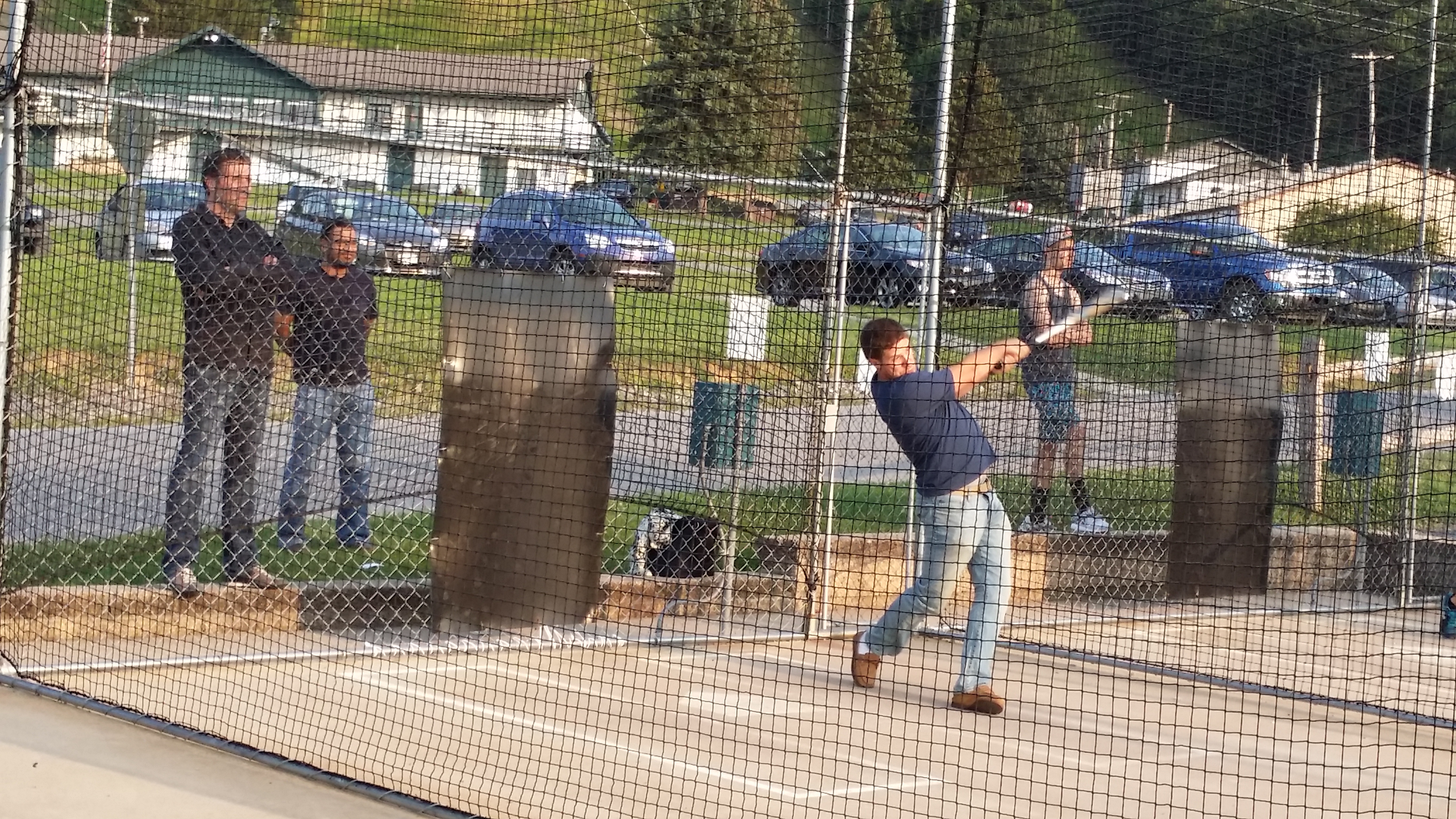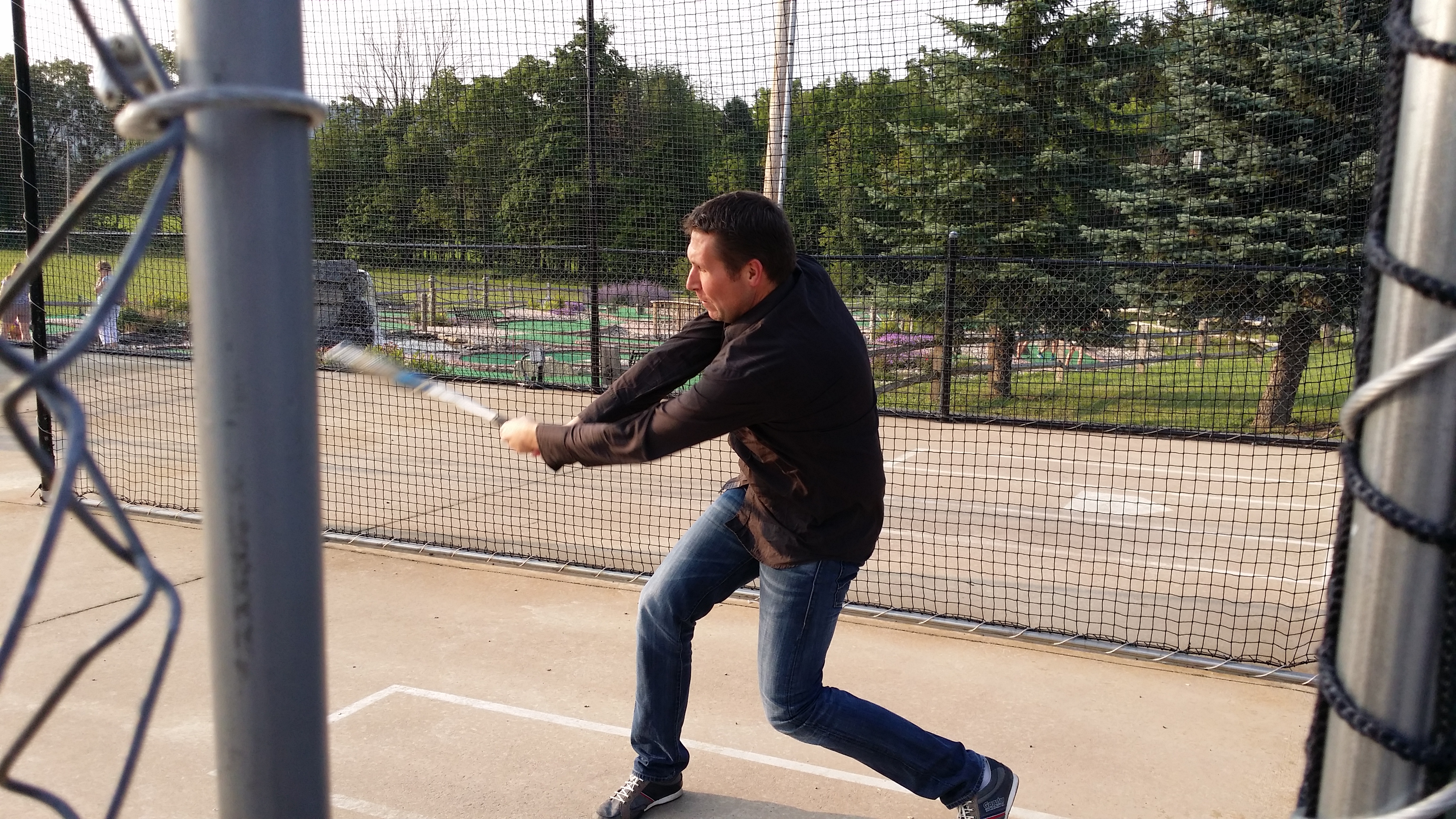 Ook hebben we ervoor – en erna – nog een paar rondes batting cage gedaan. Je staat dan in een grote kooi, met een honkbalknuppel, tegenover een apparaat dat met grote snelheid baseballen op je afvuurt, in totaal komen er 18 ballen. Het idee is dat je die 1 voor 1 slaat. Ik heb dat ooit in Canada gedaan, toen was is 15 jaar. Ik vond dat toen al heel erg leuk (maar ik wist ook nog dat het best lastig was…). Het is in het begin echt even wennen, maar op een gegeven moment krijg door hoe het in z’n werk gaat en begin je ballen te raken. Maar dan moet je ze nog goed slaan he… Ik was toch nog voornamelijk aan het prutsen, Michiel kreeg er snel vat op, Peter bleek dat al vaker te hebben gedaan, en Pranav (debutant in de batting cage) was al gauw de beste van ons vieren. Bij Indiers zit cricket in hun bloed, dus het was niet zo raar om te zien dat hij er zeer handig in was.