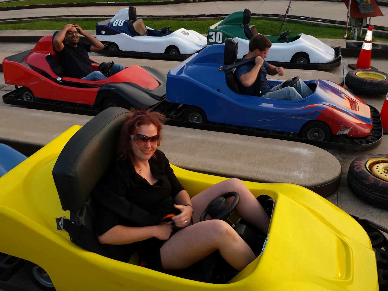 Die karts gingen echt totaal niet snel. Een helm hadden we echt niet nodig. Anders hadden die Amerikanen zo’n ding hier echt wel verplicht gesteld 😉