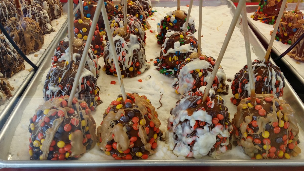 2014-08-24 17.52.49 Gepubliceerd augustus 25, 2014 op 4128 × 2322 in Cultureel: naar de Grange Fair ← Vorige Volgende → Appels met chocola met spikkels en M&M’s en suikerglazuur. Op een stok