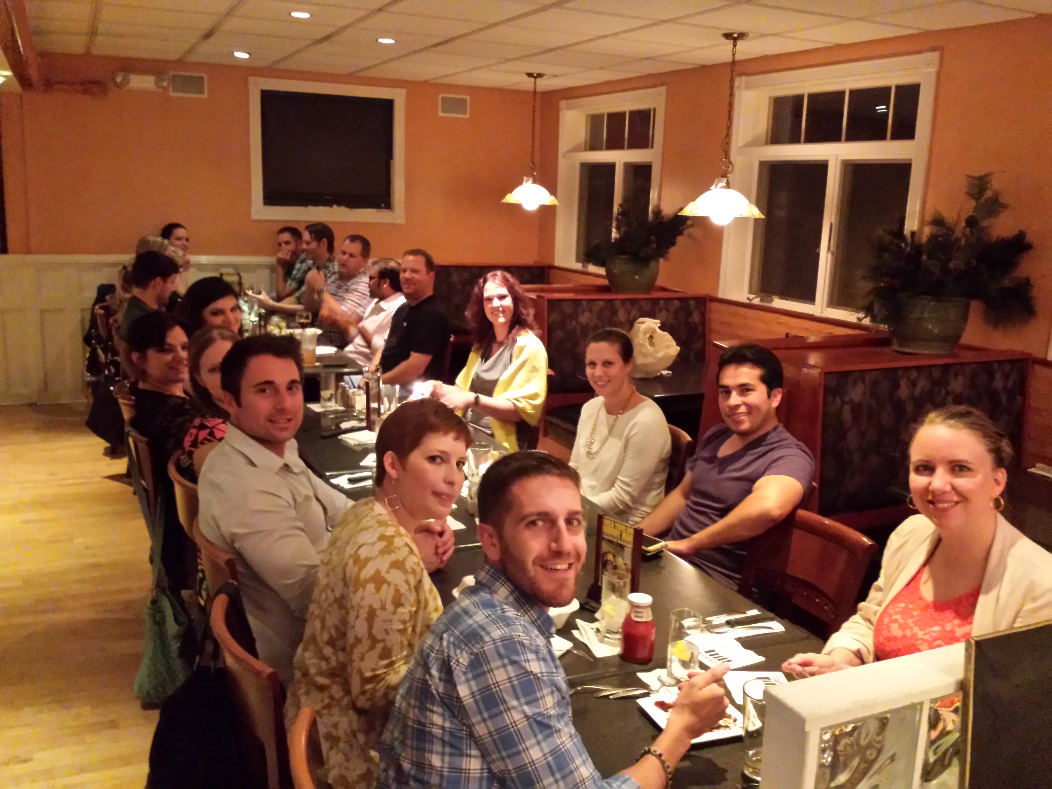 Nu had ik breed ingezet qua uitnodigingen, en waren er meer dan 20 mensen die zouden komen. Collega’s (Eelco en Joana, Chris en Christy, Pranav), mensen van de trivia (Susan en Gabe), en mensen van de groep (o.a. Emily, Kayla, Joanna, Jake, Julie, Lauren, Amy, Clinton, Mallory…) waren er allemaal. Het was een grote groep – uniek en best speciaal. Na het eten zijn we met een afvaardiging downtown gegaan (Inferno) en hebben we nog een borrel gedaan.