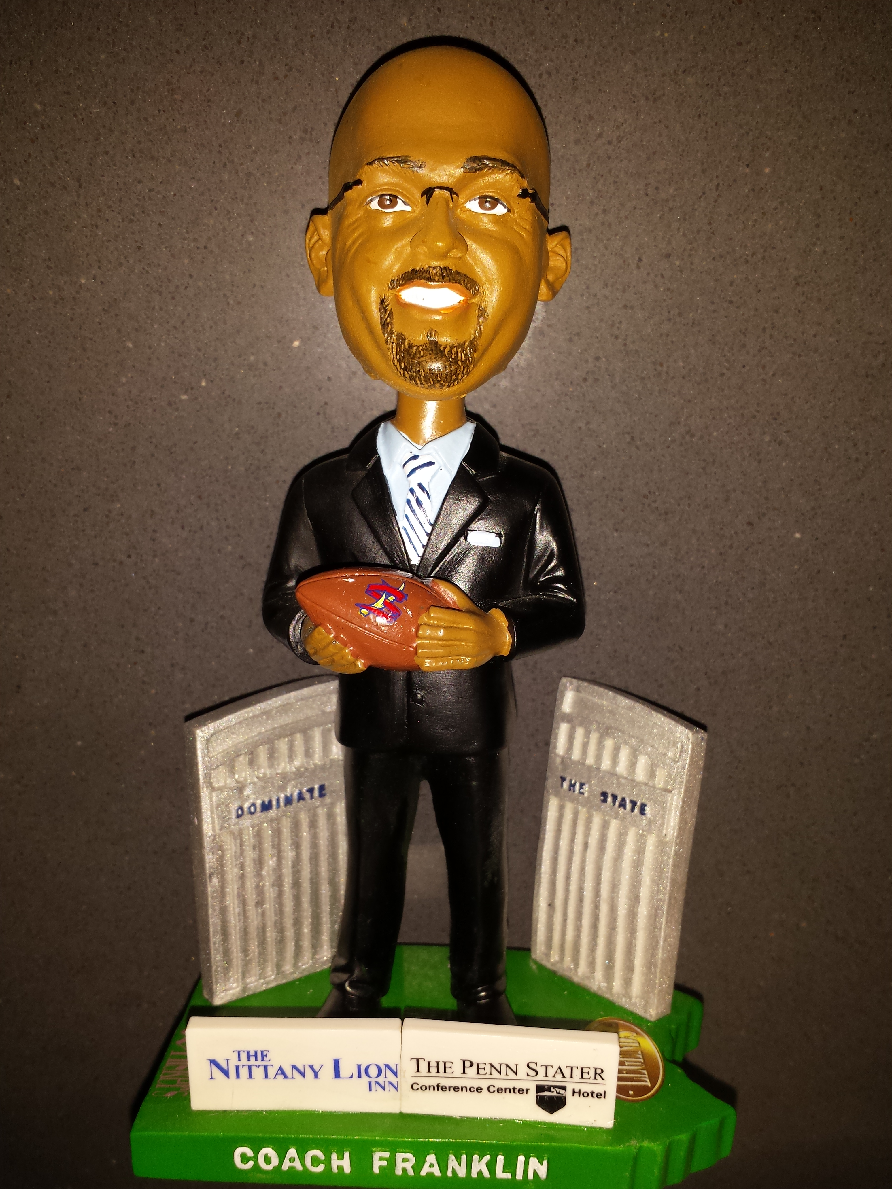 Afgelopen donderdag zijn we niet naar trivia geweest. Peter en Jess wilden graag naar de baseball. Waarom? Twee redenen: het zijn de laatste wedstrijden van het seizoen, en (belangrijker voor Jess), er werden voor de eerste duizend bezoekers gratis ‘bobbleheads’ uitgedeeld (een collector’s item vanwege de nieuwe football coach James Franklin). En dus ging trivia niet door, en gingen Michiel en ik, Chris en Pranav naar Medlar Field voor een baseball wedstrijd. Dat was voor Michiel een primeur – hij had nog nooit een live baseballwedstrijd meegemaakt.