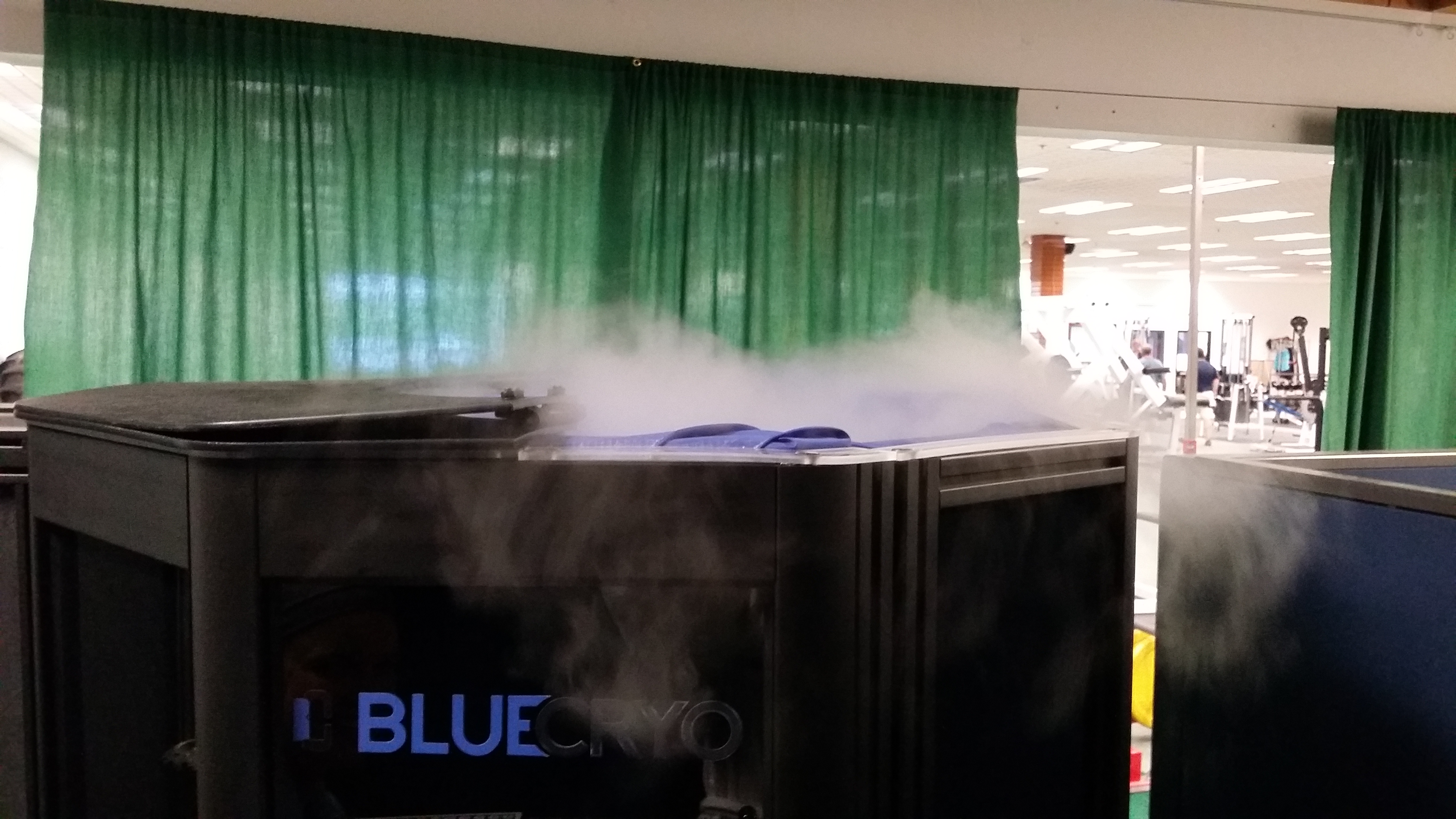 Zou goed moeten zijn voor de doorbloeding, voor je hartritme, je zou er beter door gaan slapen, je verbrandt er schijnbaar 500 calorieen mee (in twee en halve minuut!), het vermindert spierpijn en is dus goed tegen nek- en rugpijn, en het zou zwellingen verminderen. Een hele waslijst met voordelen dus. Pranav heeft nog steeds last van een dikke knie na zijn operatie begin dit jaar, en ik heb tegenwoordig weer last van een stijve nek (en ik slaap ook niet goed). Dus… laten we het maar proberen. De eerste keer zou gratis zijn (normaal 40 tot 50 dollar per keer). Dus na het werk, en voor het avondeten, zijn Pranav en ik naar de sportschool gegaan voor een Cryotherapy-probeersel-sessie.