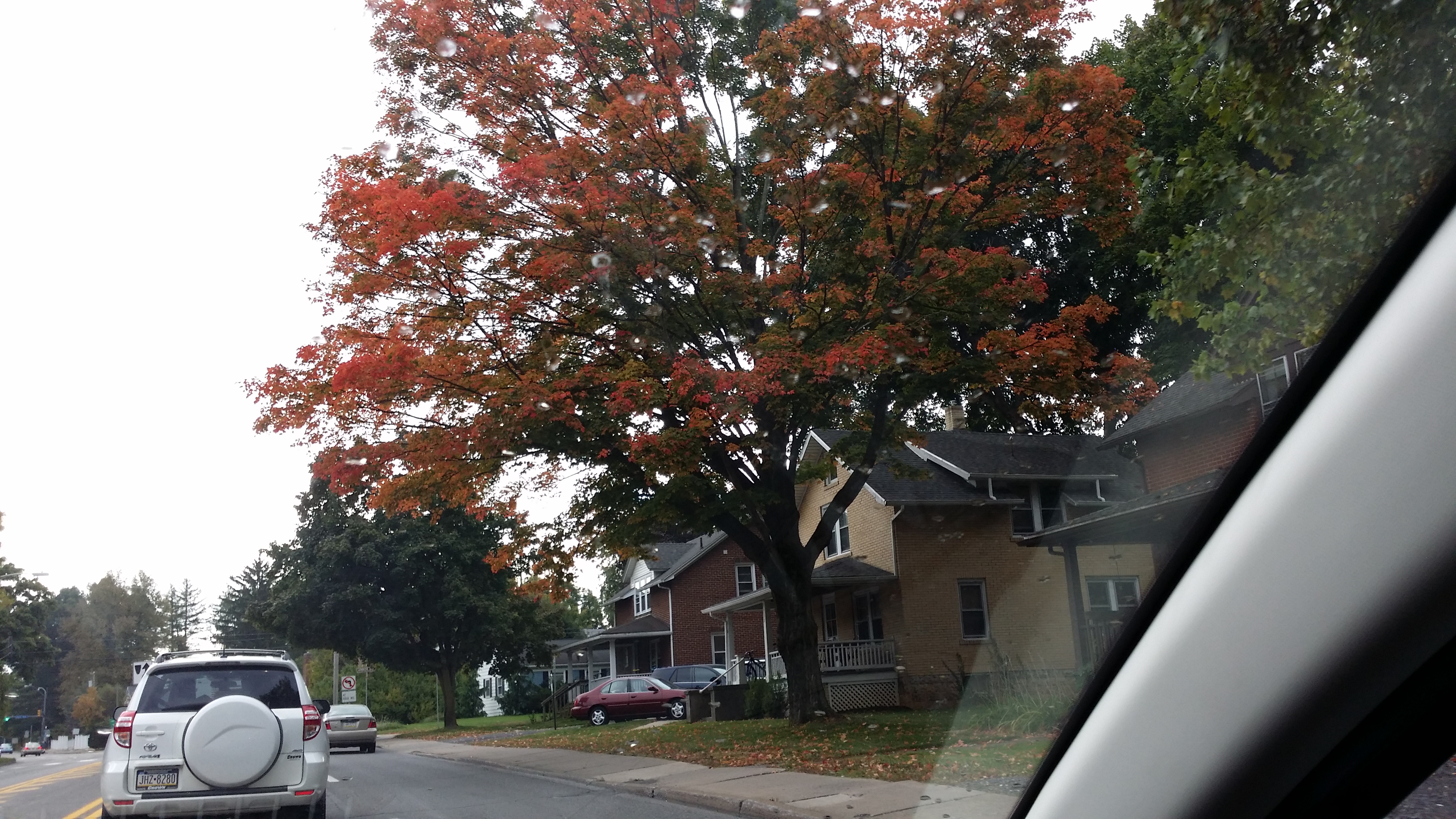 In Nederland verkleuren de bomen geel en bruin, en soms wat oranje – hier worden ze ook rood. Dat komt door de aanwezigheid van een parasiet hier in Noord-Amerika die niet in Europa voorkomt. Om die parasiet te weren, worden de blaadjes van sommige bomen hier rood. En dat is echt een schitterend gezicht, weet ik nog uit mijn tijd in Canada.