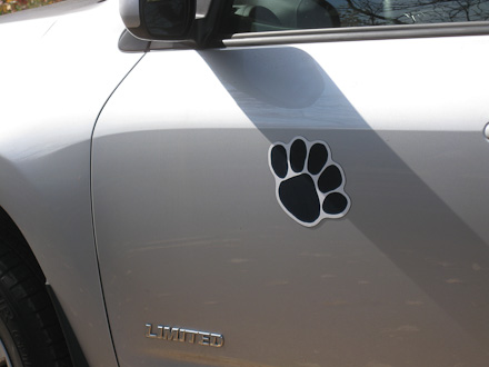 Wel worden er een aantal rare pootafdrukken gebruikt hier in State College: de Nittany Lion zou vijf tenen hebben in de pootafdruk. Dat is anatomisch gezien fout: een kat (en dus ook tijgers, leeuwen, poema’s…) heeft weliswaar vijf tenen, maar de ‘duimteen’ zit hoog op de voet en raakt de grond niet. Een juiste pootafdruk is dus met vier tenen. Hoe zit dat?