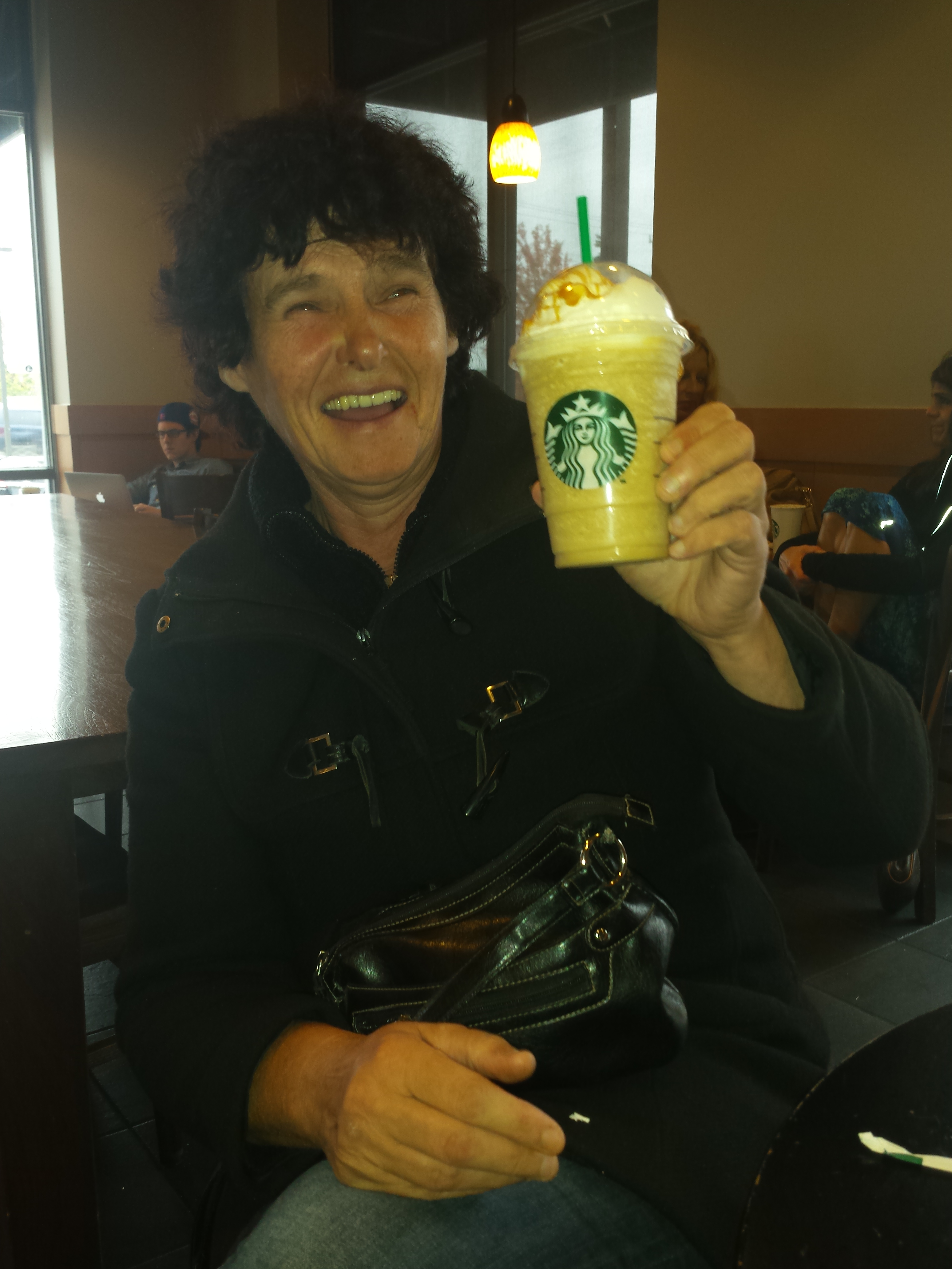 En toen was de eerste stop in State College de Starbucks. Een paar jaar geleden in Austin hebben ze de Starbucks leren kennen, en zijn ze gewend geraakt om de ochtend met een Starbucksje te beginnen. Die gewoonte zetten ze hier vrolijk door, en dus hebben pa en ma en Michiel eerst een koffie gedaan bij de Starbucks.