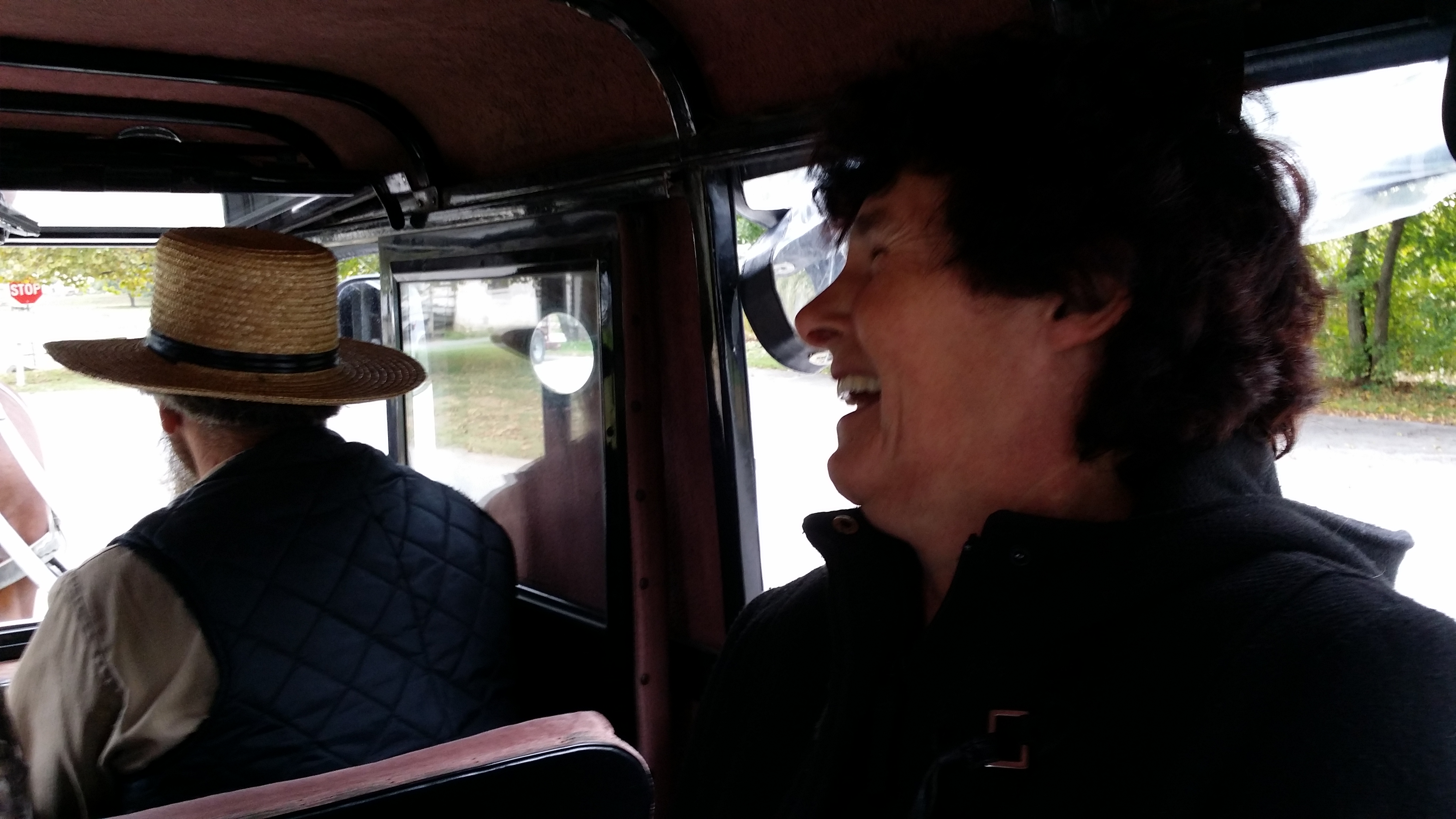 Toen een rondrittie in een Amish voertuug. Dit is een klein koetsie met een Amish chauffeur achter een peerd. De rit hef zowat 2 ure eduurt dus wel een vrij groot rittien. T’bleek ook wel an het peerd want op t’tleste mos de menner nog wel oardig vake het veur rutie van de koetse los doen umme het peerd toe te spreken dat hij de gang er wel een beetie in mus hollen.