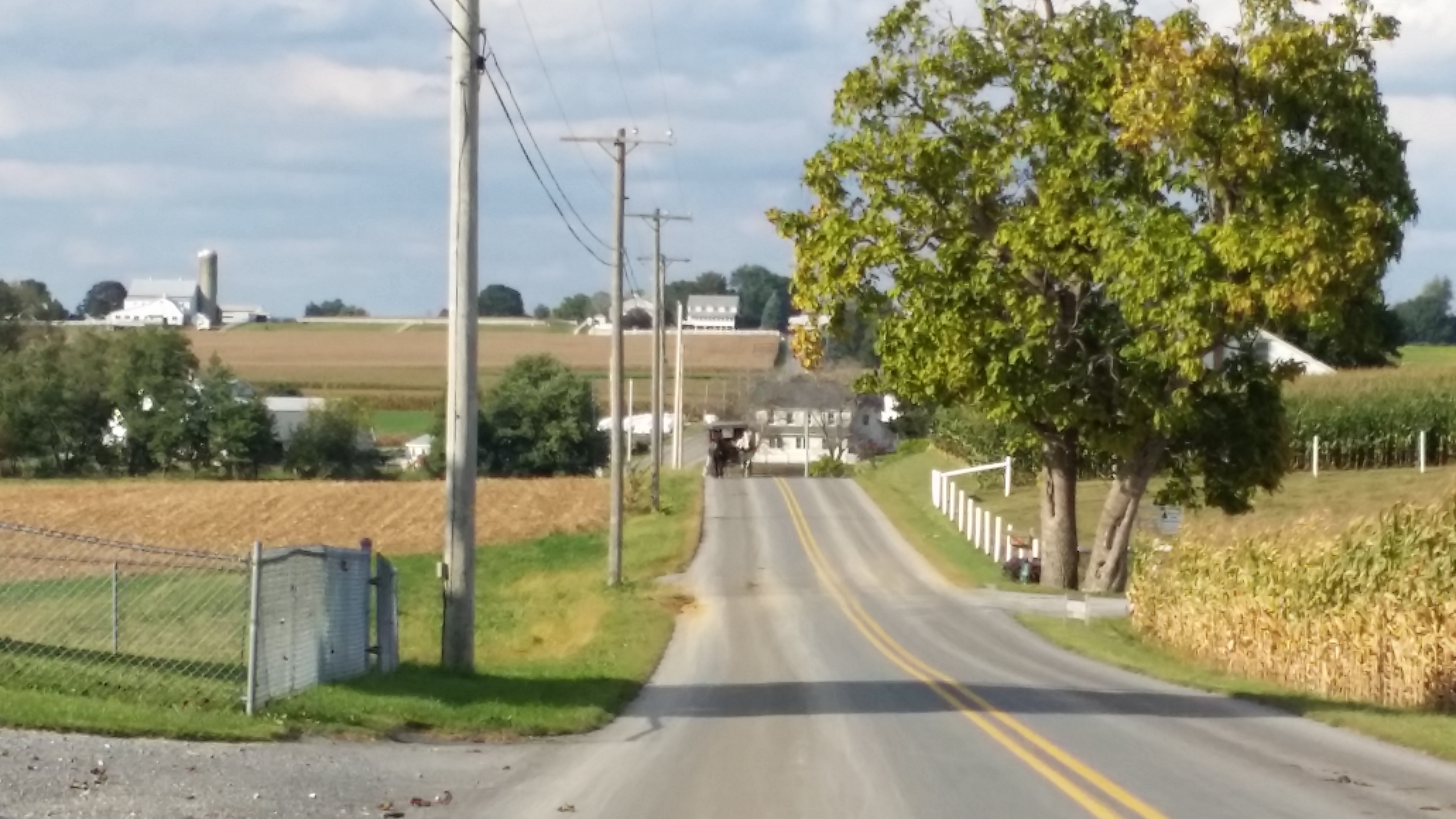 Er wonen dus een paar Amish in de buurt. Maar verreweg de meeste Amish van Amerika wonen in Lancaster County. Je kunt daar heen, en er zijn daar een soort ‘toeristische’ attracties opgezet. Rond de stad Lancaster (daar zijn zelf niet zoveel Amish) wonen er in de dorpjes Bird-in-Hand (‘vogel in de hand’) en Intercourse (‘geslachtsgemeenschap’ – ja, je verzint het niet) de meeste Amish. Zo’n 35.000 ongeveer… Dat zijn er heel wat meer dan de 40-50 die hier in de regio rondrijden.