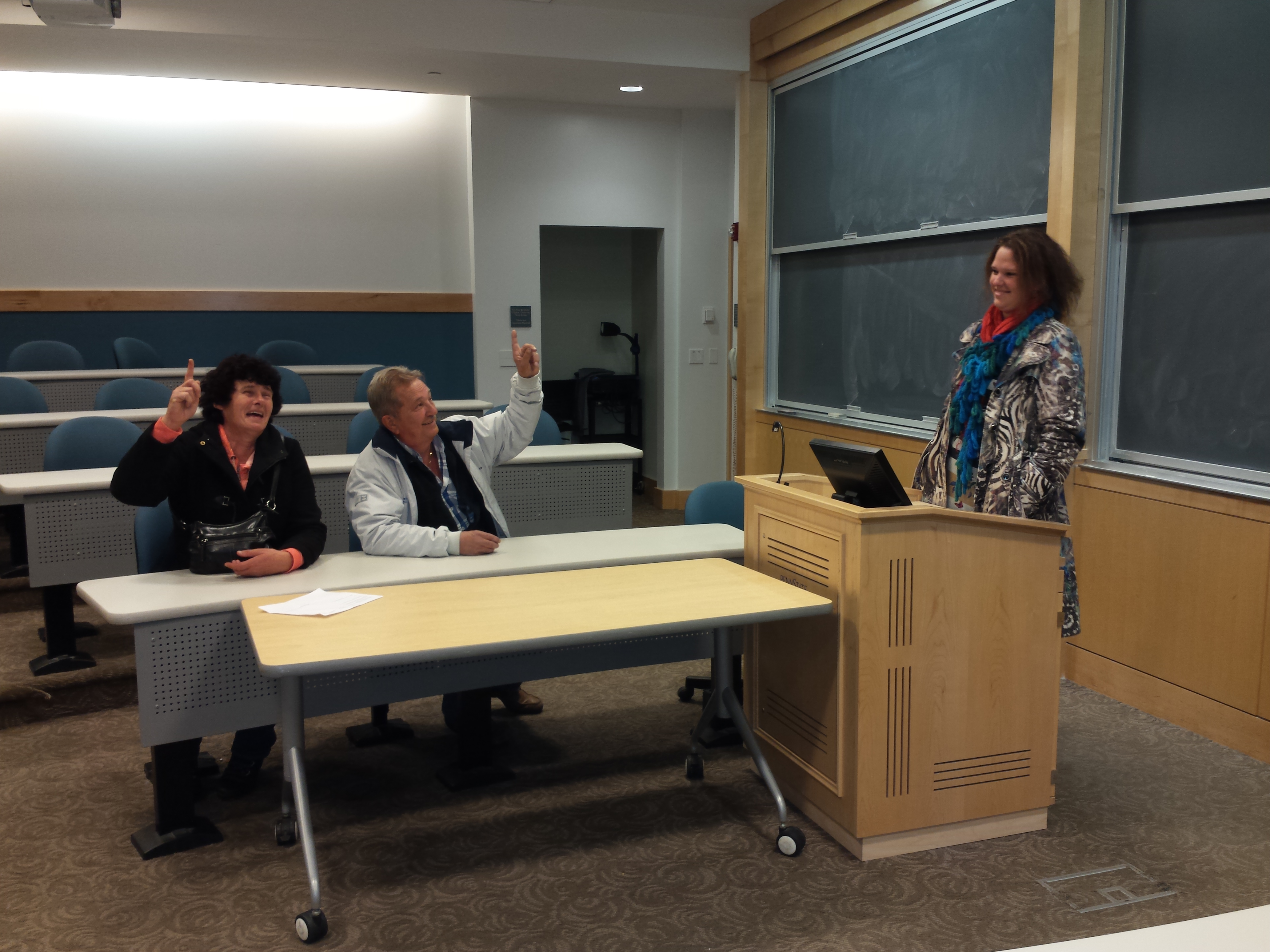 Ik weet het niet 100% zeker, maar volgens mij heb je zo ongeveer eenzelfde foto van pa en ma in jou klaslokaal van de campus in Texas (waarschijnlijk op je toenmalige blog?). Leuk! Krijgen alle bezoekers bij jullie dezelfde rondleiding? Dan trek ik mijn loopschoenen aan 🙂