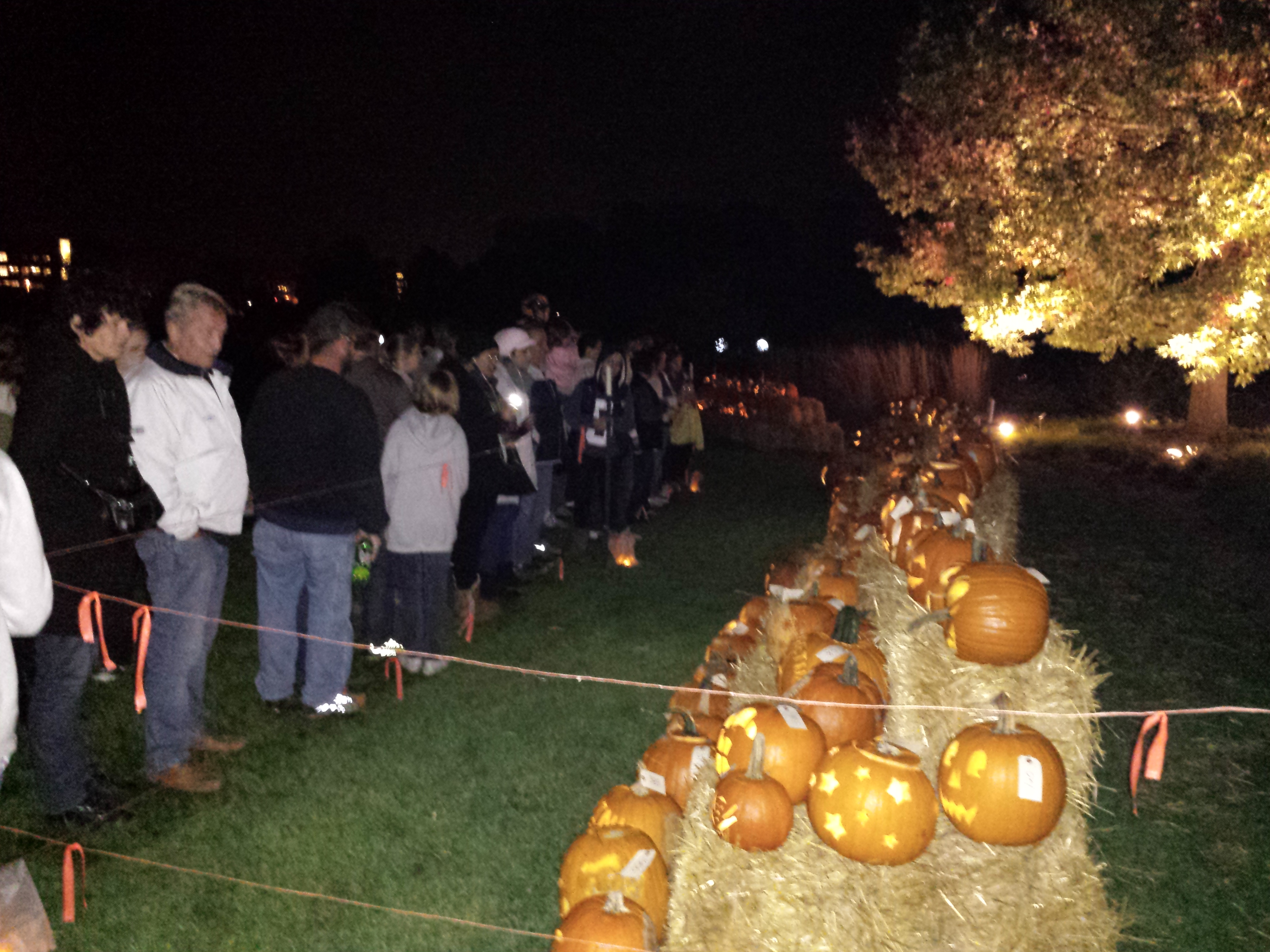 Vrijdagavond zijn wij met z’n vieren naar het Arboretum geweest. Daar hadden ze het jaarlijkse ‘Pumpkin Festival’. Dat is een wedstrijd en tegelijkertijd tentoonstelling van heel veel pompoenen, allemaal met verschillende figuurtjes ingesneden. Met een lichtje erin zijn dat lantaarns, en wel ‘jack-o’-lanterns’ leerden we. Een week daarvoor waren die pompoenen uitgedeeld aan kinderen vanaf 2 jaar. En die pompoenen zien er al heel erg kunstig uit, met een lichtje erin, maar de pompoen gemaakt door de Penn State studenten waren absolute kunstwerken. Mijn pa en ma hadden nog nooit zoiets gezien. En wij eerlijk gezegd ook niet.