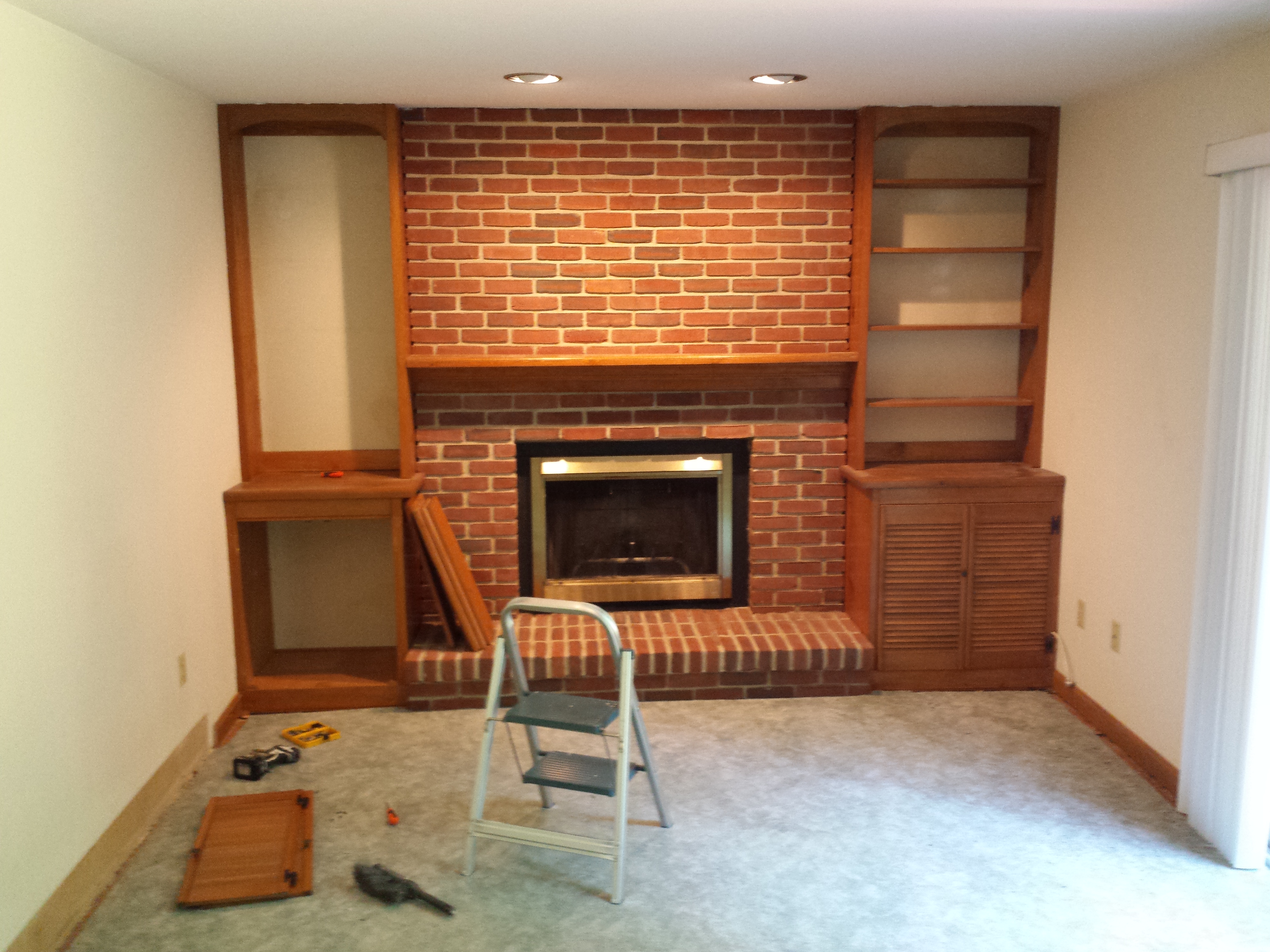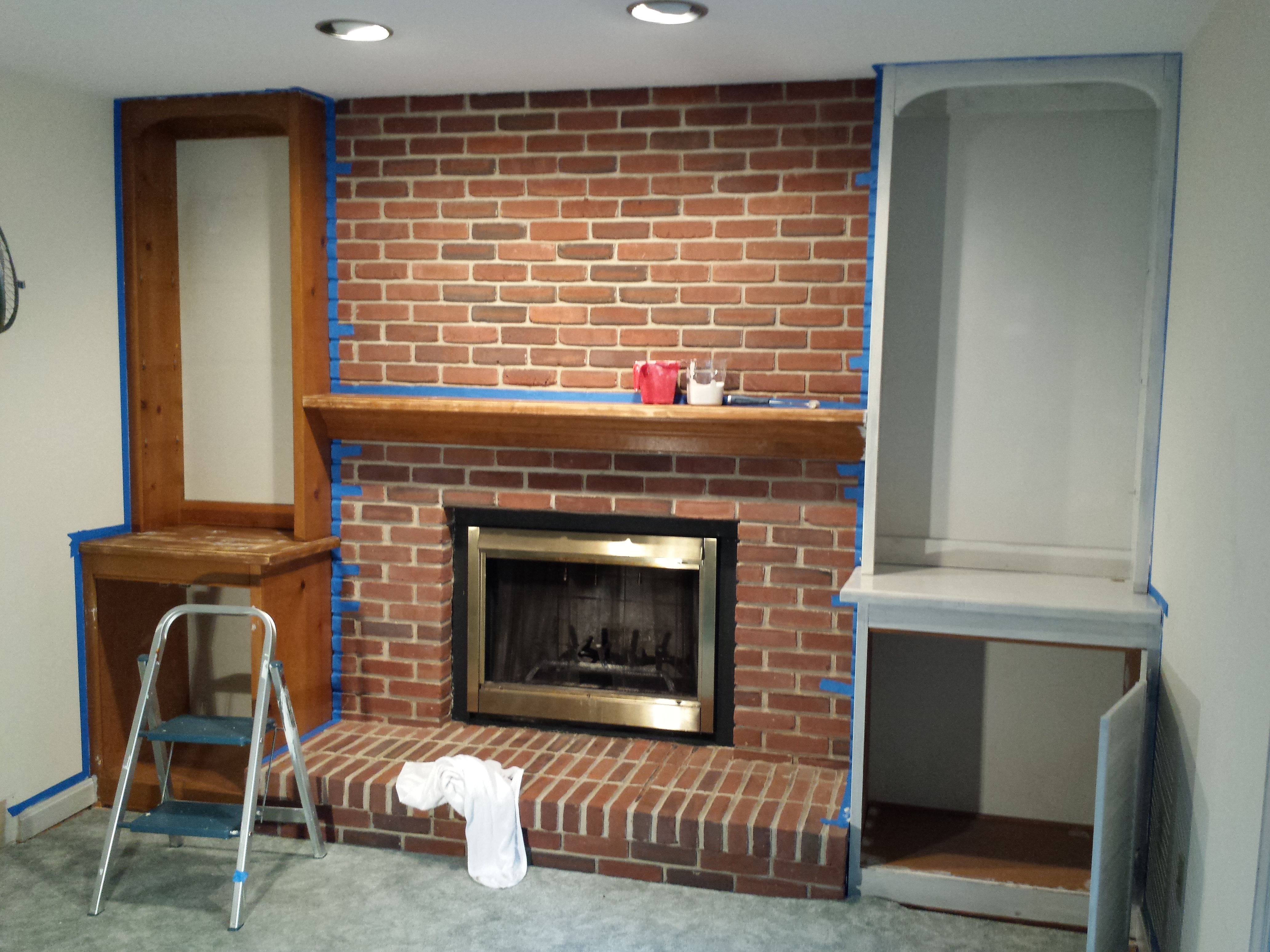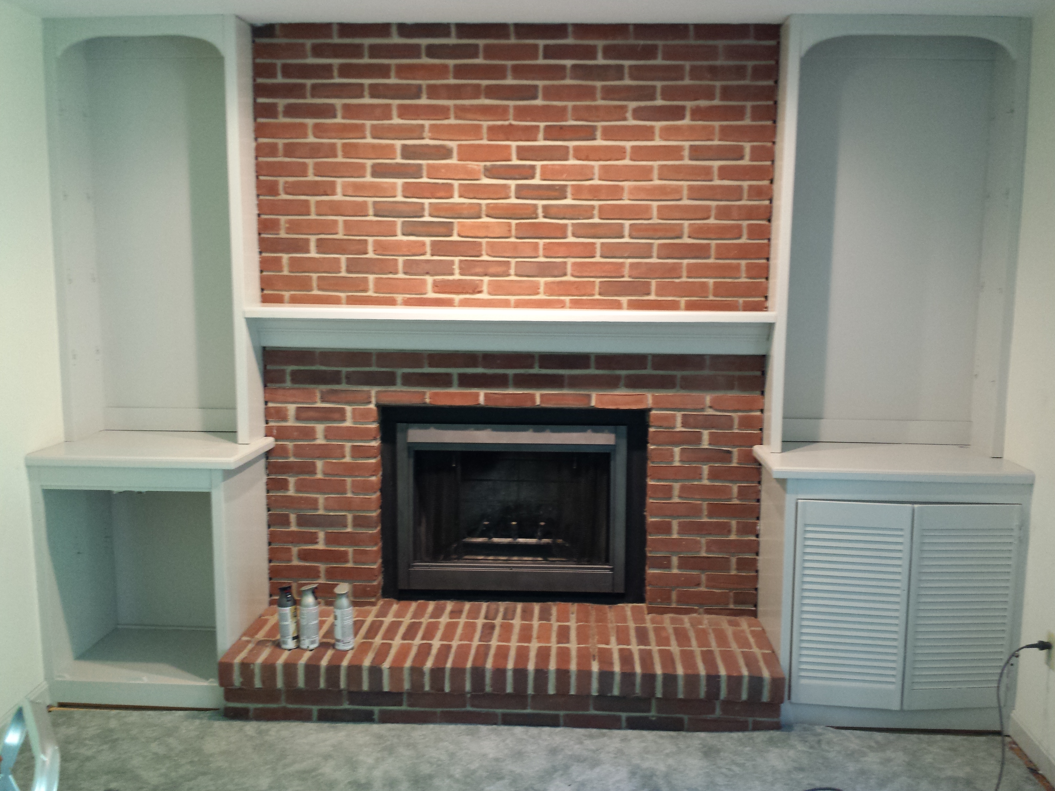 Dat kon anders. Natuurlijk heeft Michiel de muren en het plafond opgefrist met verse verf. Daarnaast heeft Michiel de boekenkast geschilderd in grijs, inclusief de louvredeurtjes die ook daar weer in zaten (er zitten hier louvredeuren in heel het huis…). Het gordijn is verwijderd, de muren zijn daar waar nodig hersteld. Het tapijt ging eruit, en daar ligt nu een mooie laminaatvloer, met plintjes, die wat grijstinten heeft. De radiatoren zijn ook overgespoten en weer gemonteerd. De stopcontacten en schakelaars zijn vervangen. De open haard heeft Michiel helemaal uit elkaar gehaald, en overgespoten, wederom met spuitbussen. En sohee… die zit er weer als nieuw uit!! En een stuk moderner bovendien!