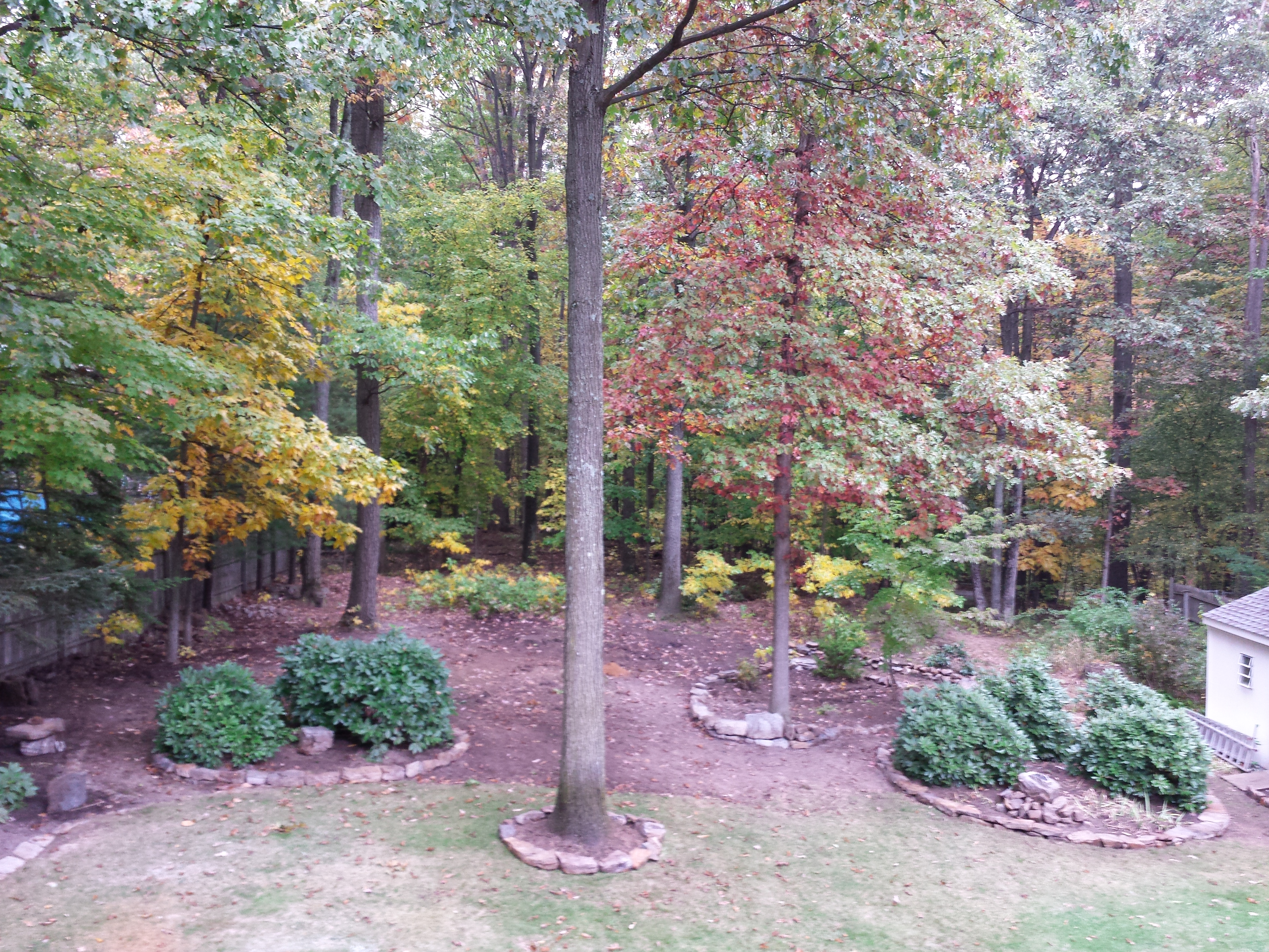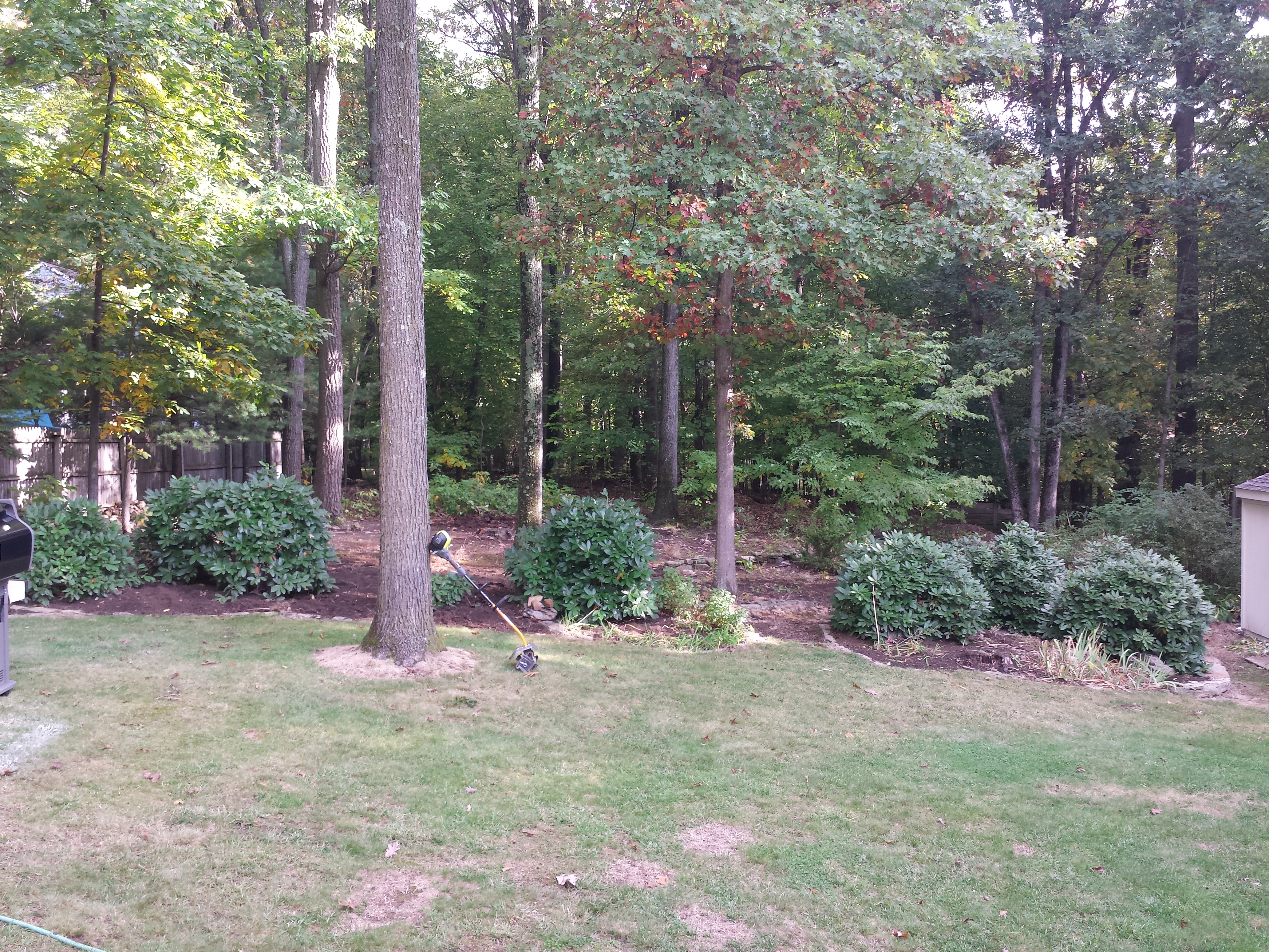 In de achtertuin heeft Michiel veel lage bosjes weggehaald, het leek wel alsof daar jaren niets aan gedaan was. Hij heeft een pak bladeren van soms wel twintig centimeter dik weggehaald (de chipmunks, eekhoorns en slangen die daar hun hol hadden waren daar niet blij mee). Vervolgens heeft ie de boel gespit, en dat met een spitmachine.
