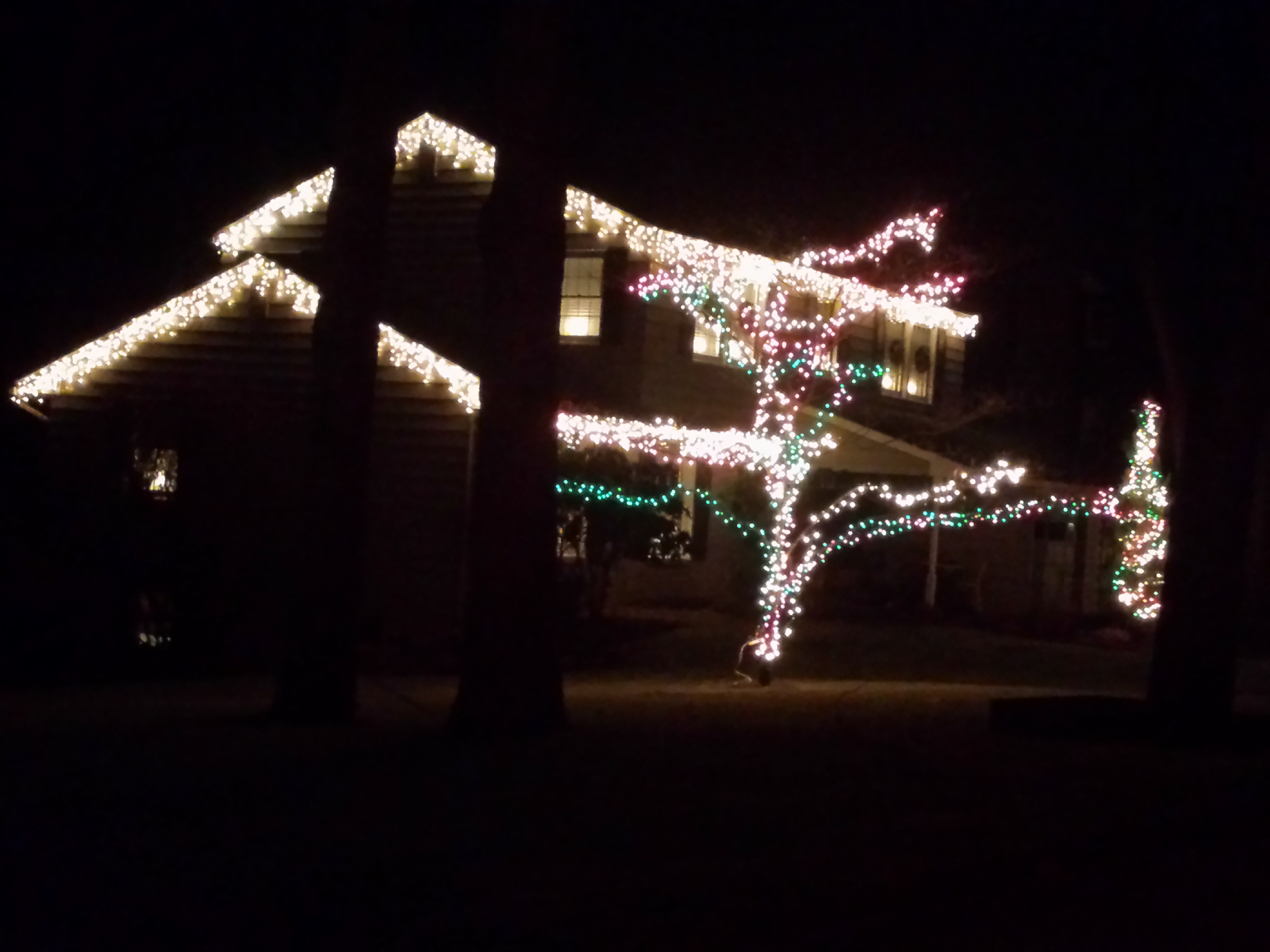 Er waren natuurlijk al tig huizen die versierd waren met pompoenen (vanwege de herfst) en met opgehangen lakens en spinnenrag (vanwege Halloween) – nu zijn die huizen helemaal in kerststemming uitgedost. Een paar voorbeelden: