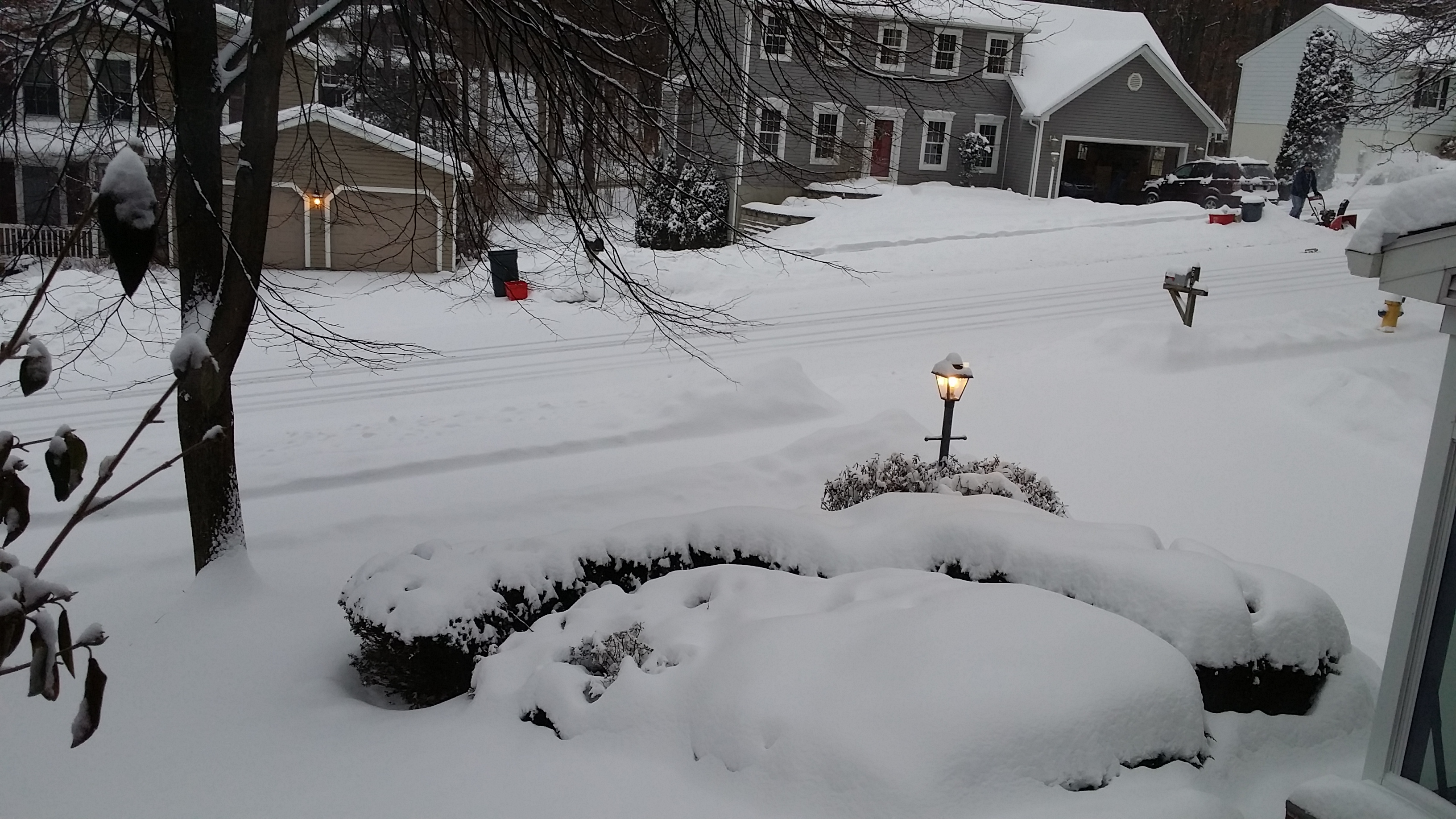 En maandag blijft het ook doorsneeuwen, eigenlijk de hele dag… En dinsdag dan ook weer. Woensdag even niet, maar ook donderdag en vrijdag sneeuwt het weer. Dus we kunnen er even tegenaan! Want we moeten onze oprit en de stoep voor ons huis vrijhouden van sneeuw (tenminste, zoveel mogelijk, zowel vanwege de buren als vanwege onze auto). En dat is nog best een karwei. Vraag Michiel maar, het is voornamelijk zijn taak…