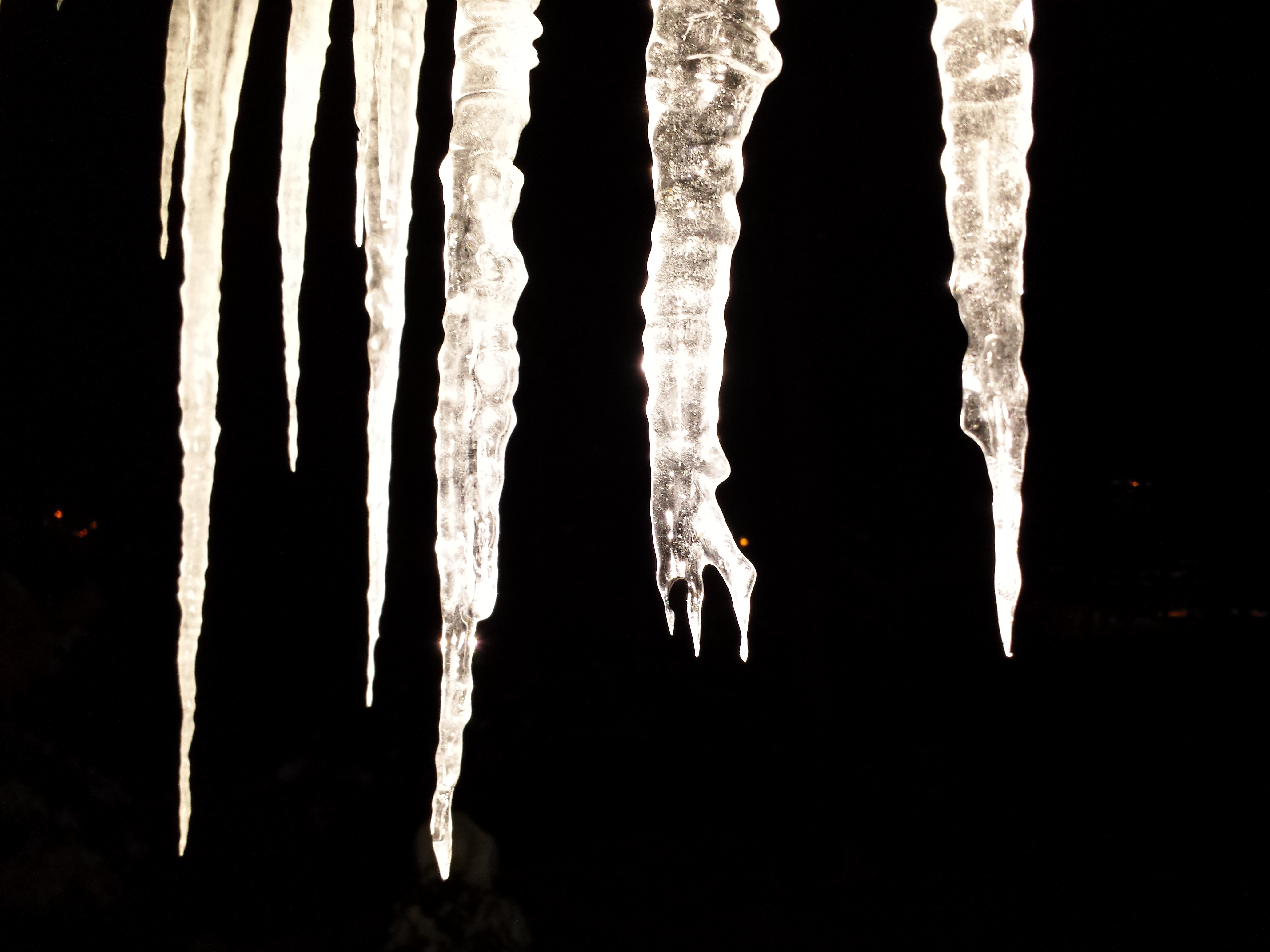 Ook ijs hebben we, vooral in de vorm van ijspegels. Die zijn niet geheel ongevaarlijk – mocht je er onder lopen als die dingen vallen, kun je flink pijn doen. Michiel heeft gisteren een ijspegel van ruim anderhalve meter van de dakgoot afgehaald…. zo dik als een flinke bovenarm!