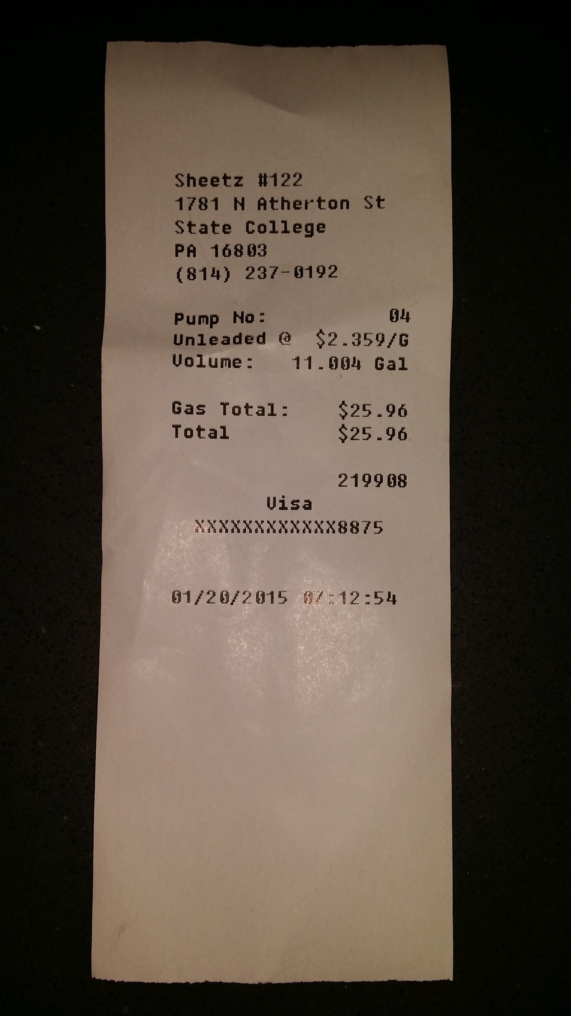 NB: Nu zeg ik altijd dat Nederland 4 keer in Pennsylvania past, en dat afstanden ook 4 keer zo groot zijn. Het feit dat de benzineprijzen ook 4 keer zo laag zijn (moet wel, he, vanwege die grote afstanden…), is vanuit dat perspectief niet zo gek. Even daargelaten dat veel auto’s hier vaak van die benzineslurpende SUVs of trucks zijn, die echt wel wat meer lusten dan de typische Nederlandse hatchback..!