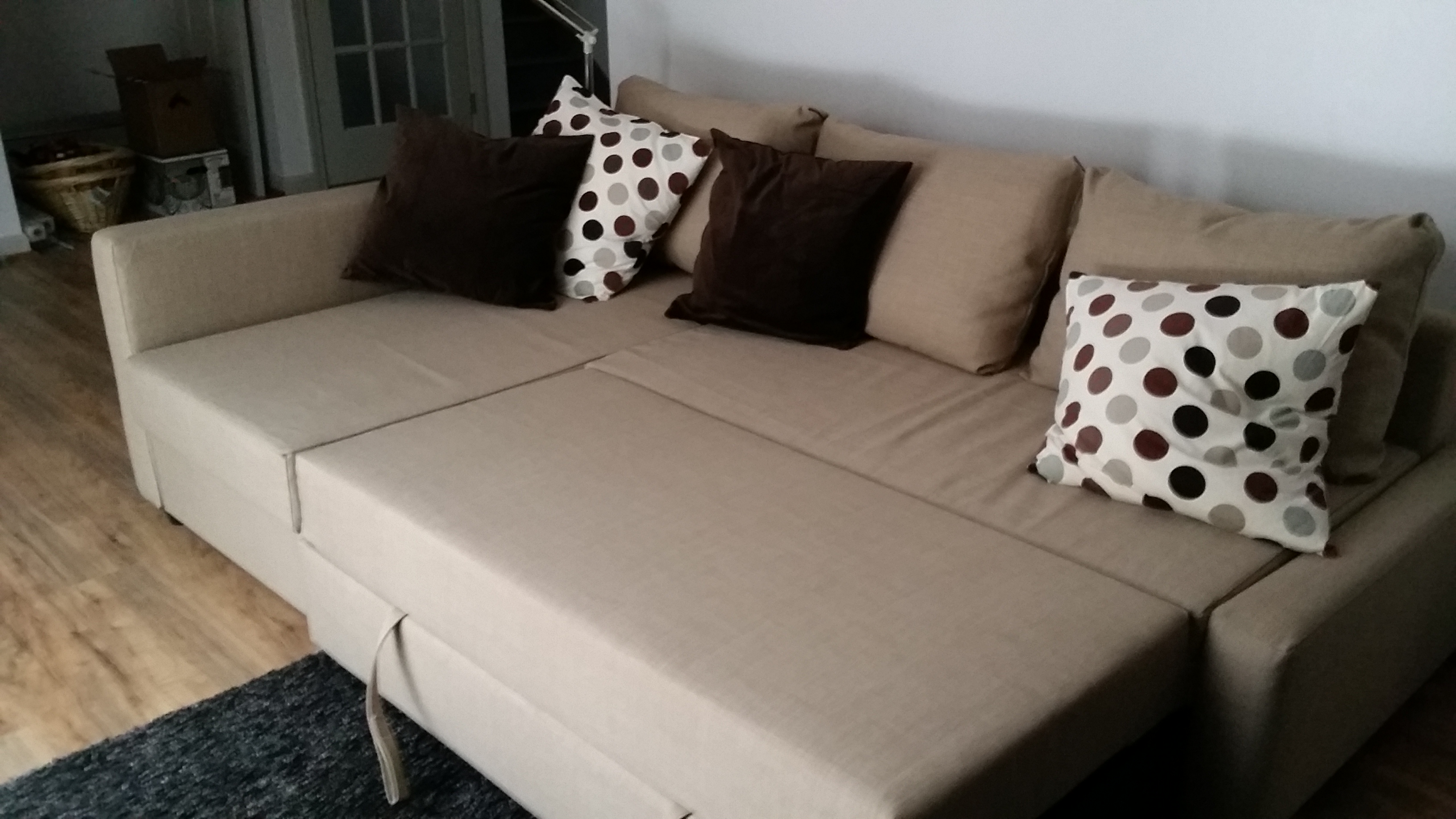 Mooi! Toevallig hebben we hier ook die bank vorige week in elkaar gezet (maar dan voor boven) en dan in het grijs. Hij zit heerlijk!!! Jullie hebben het al echt gezellig gemaakt!