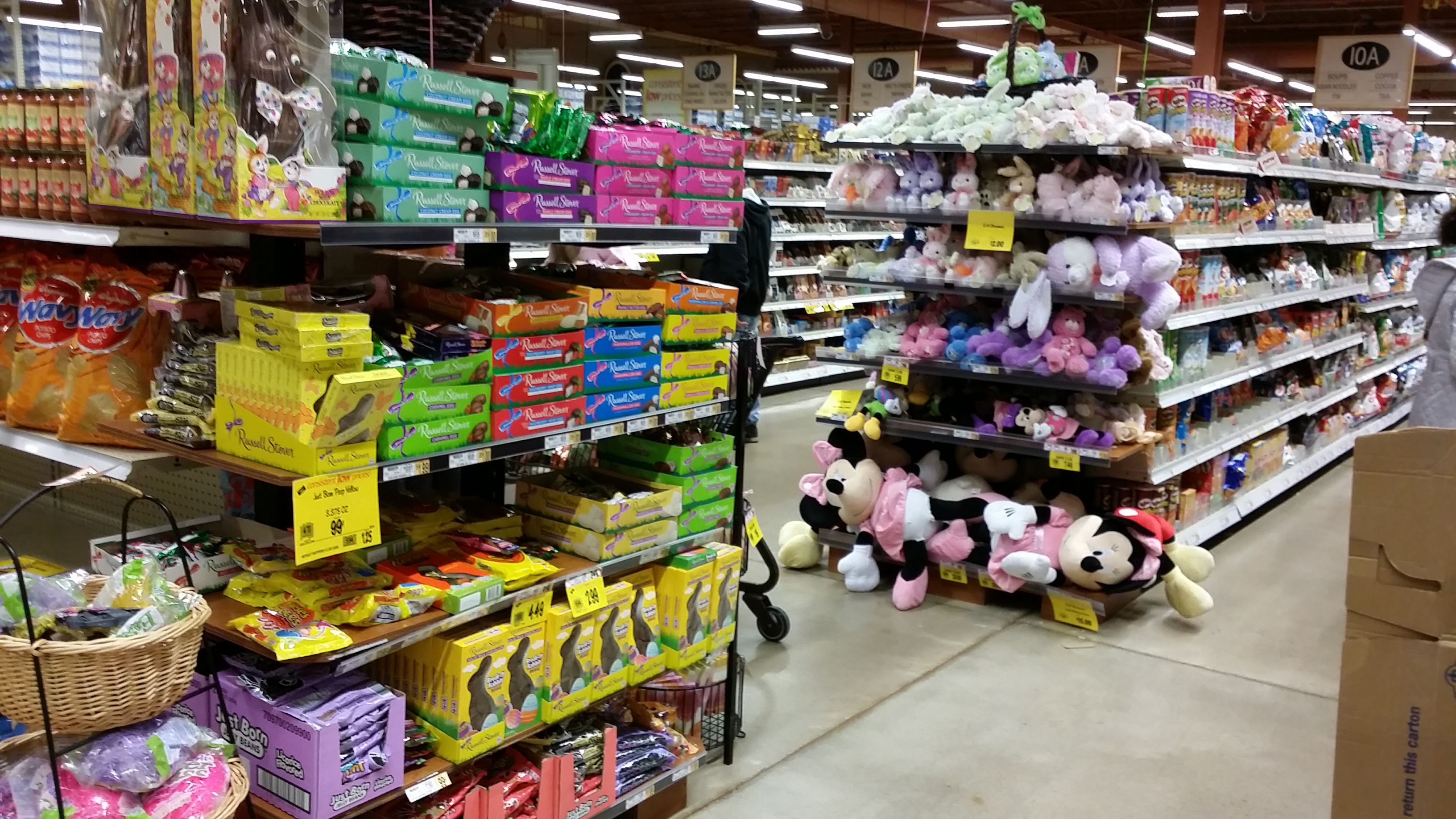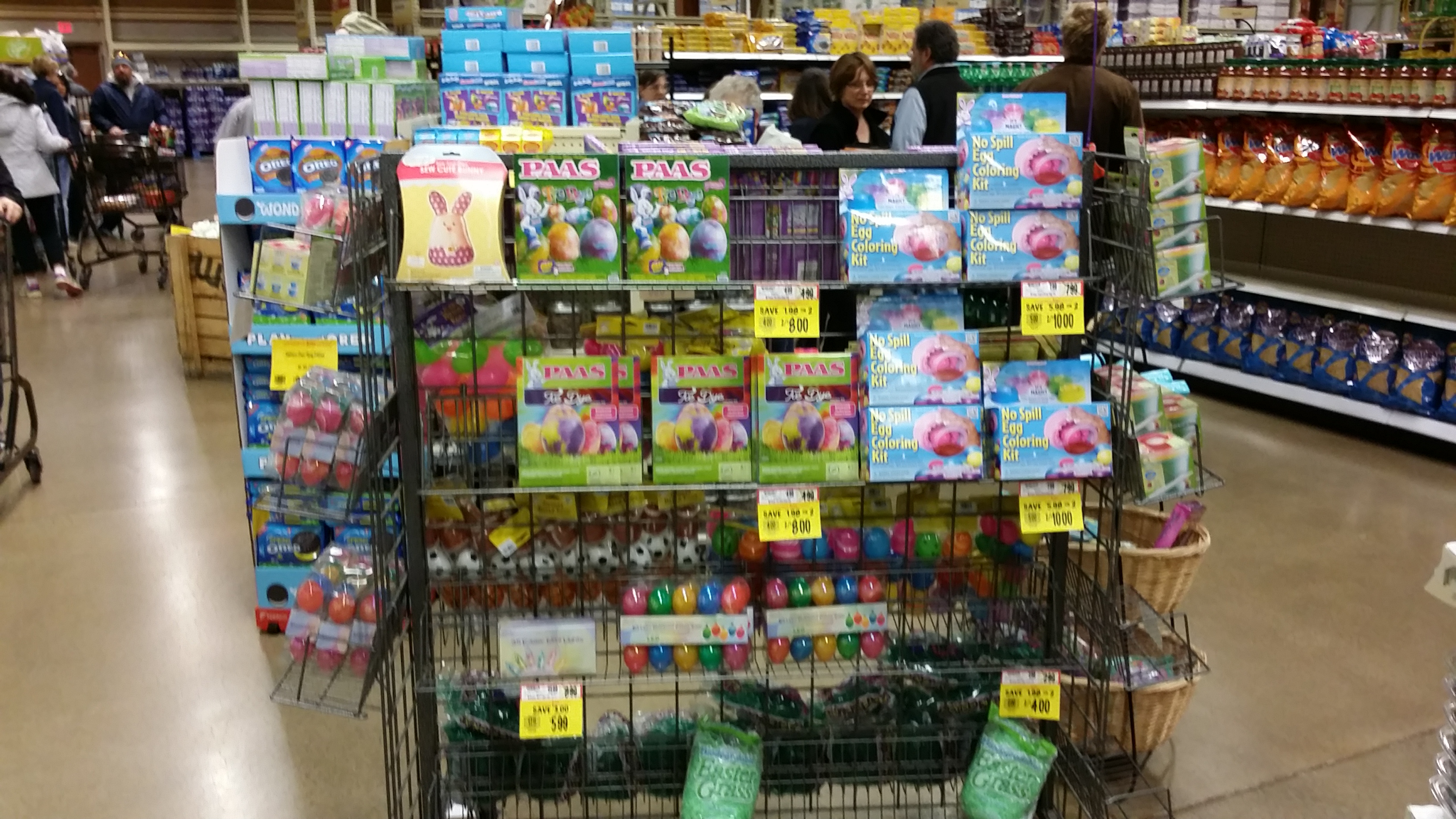 Het is haast raar dat het chocoladepaasei de oceaan nog nooit is overgestoken. Die zijn hier amper te vinden. Ze hebben hier wel heel veel ander paassnoep: de Reese’s Cups (chocola met pindakaasvulling) hebben een paasversie. Hershey’s (van de Hershey’s Kisses) heeft een plastic ei met daarin Hershey’s Kisses erin. M&Ms heeft ook zo’n plastic ei met daarin M&Ms. Het lijkt wel of veel van de bestaande merken een ‘paasversie’ maken. Er zijn behalve wat grote chocoladehazen geen specifieke paassnoepssoorten te koop. Dat was rond Halloween ook al het geval: de bestaande merken maakten een Halloween versie… Het zal wel iets te maken met het belang van merken – merkloze producten of kleine merken, zeker voor seizoensproducten, zijn moeilijk te vinden…