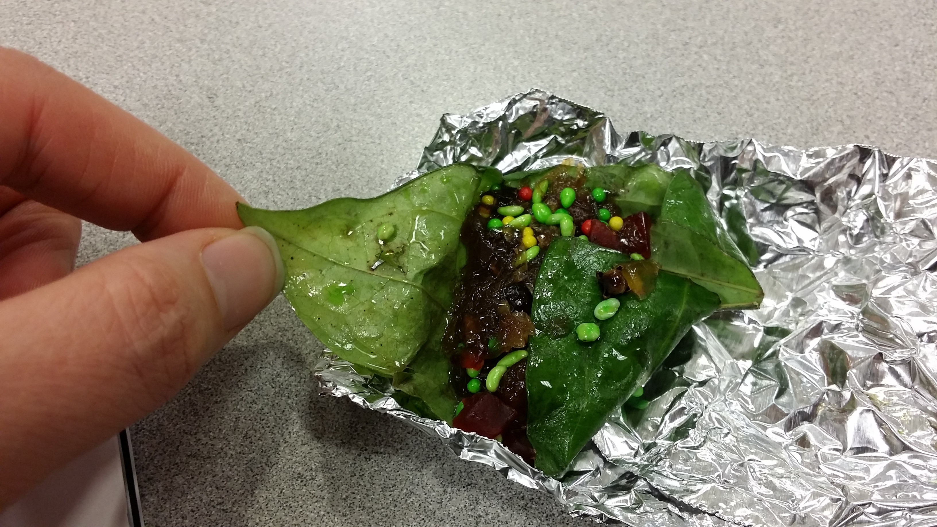En je leert ook nog eens wat: bijvoorbeeld ‘paan’: een betelblad (geen idee wat dat is) gevuld met kleine stukjes tutti frutti met was gekleurde suikerdingetjes, die je in het zuiden van India aan het einde van je maaltijd eet. Het is bedoeld om je mond te reinigen. Nu smaakte het behoorlijk naar zeep, dus dat lukte aardig!