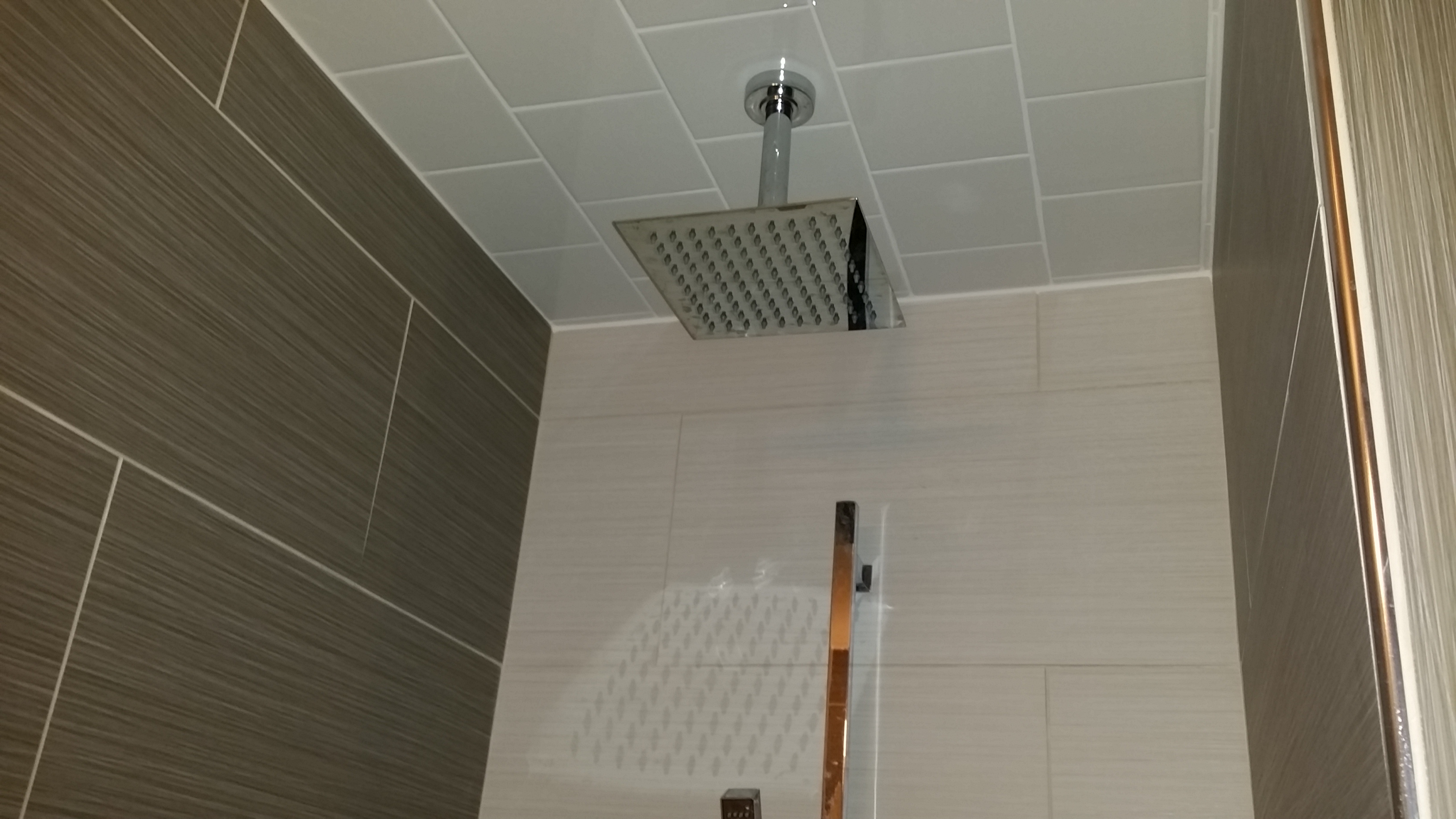 - het tegelen en voegen van plafond (jaja), vloer, muren en ook om het bad heen