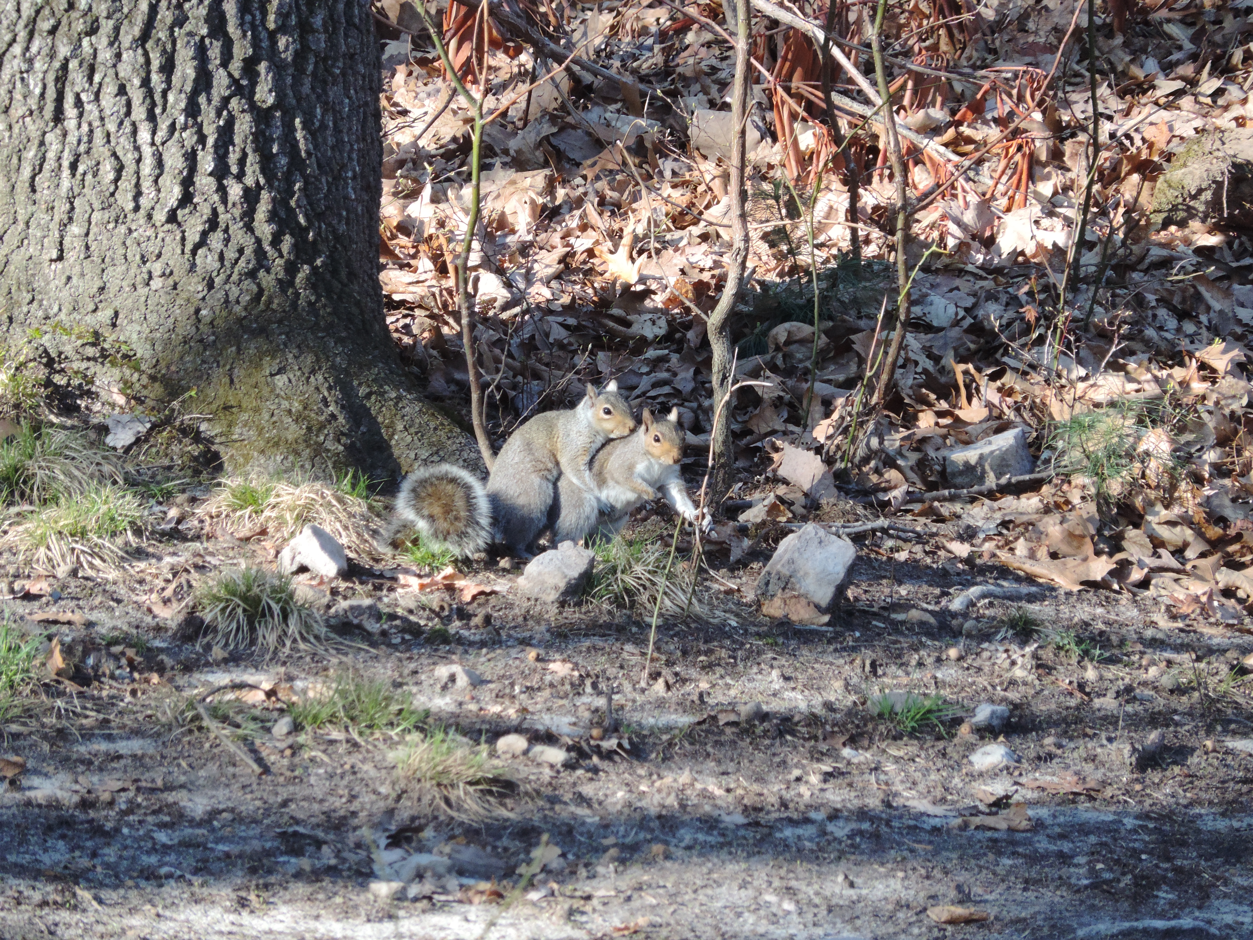 Van die laatste setting heb ik ook een filmpje. Mijn aandacht werd getrokken door een eekhoorn die helemaal ‘gek in de kop was’ en de boom in en weer uit rende, op en neer sprong, en in de lucht cirkelde. Al snel had ik het in de gaten: de lente zit in de lucht! Filmpje hieronder (even doorklikken naar de website mocht je dit verslag lezen in een email):
