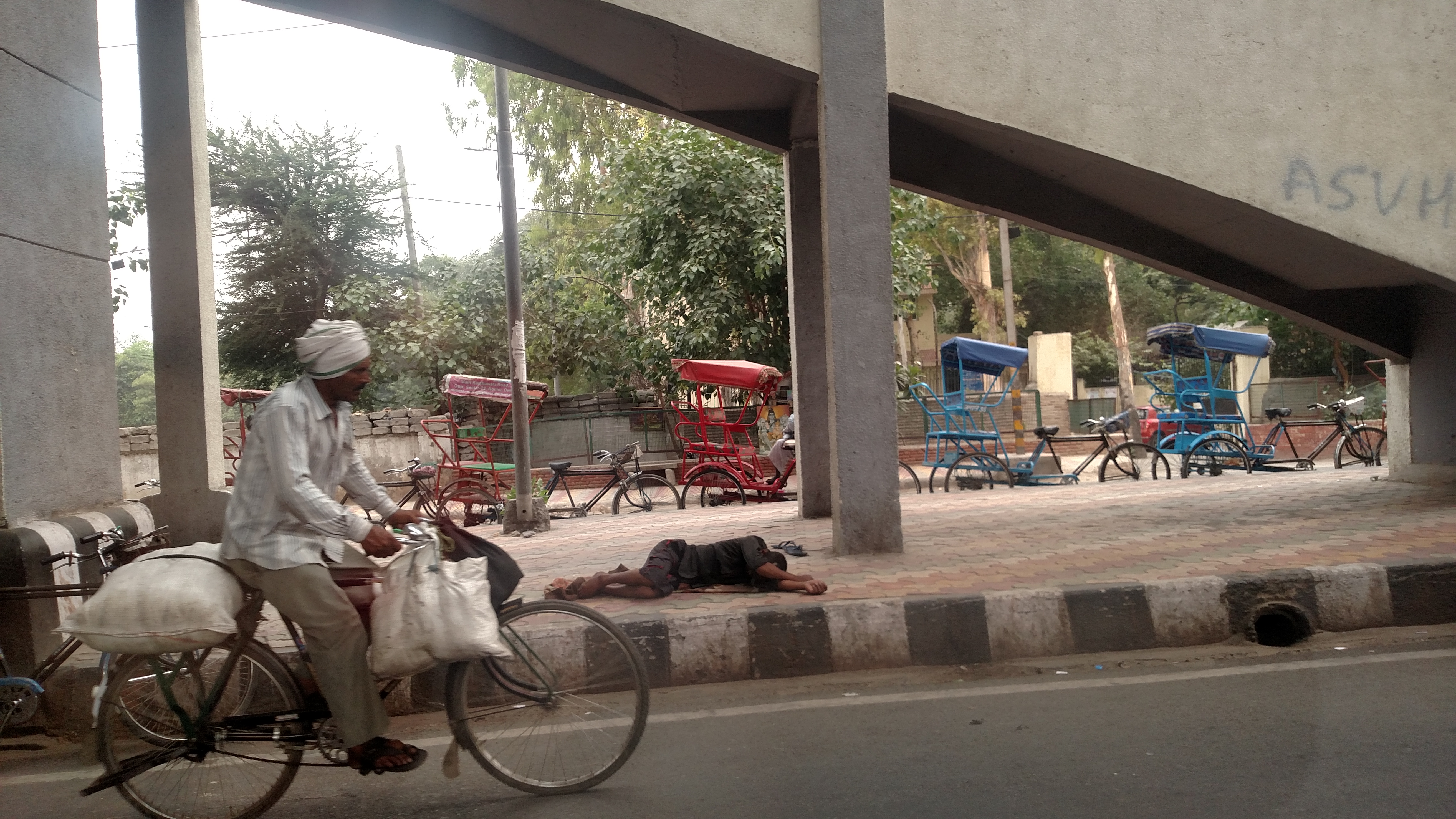 De terugreis naar Delhi was lang. Iedereen in onze auto lag half te slapen, totdat de chauffeur op een gegeven moment zei ‘oh no’ en de auto stopte. Wat bleek, de andere auto had een lekke band gehad, en die moest eerst vervangen worden. Wat doe je als Indier als je op de snelweg een eindje terug moet? Achteruitrijden. Zeker twee kilometer achteruit, gevarenlichten aan… en daar gingen we. Twintig minuten later werd de band gewisseld en konden we weer op weg.