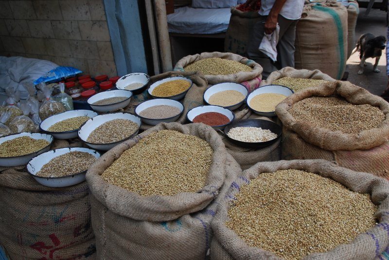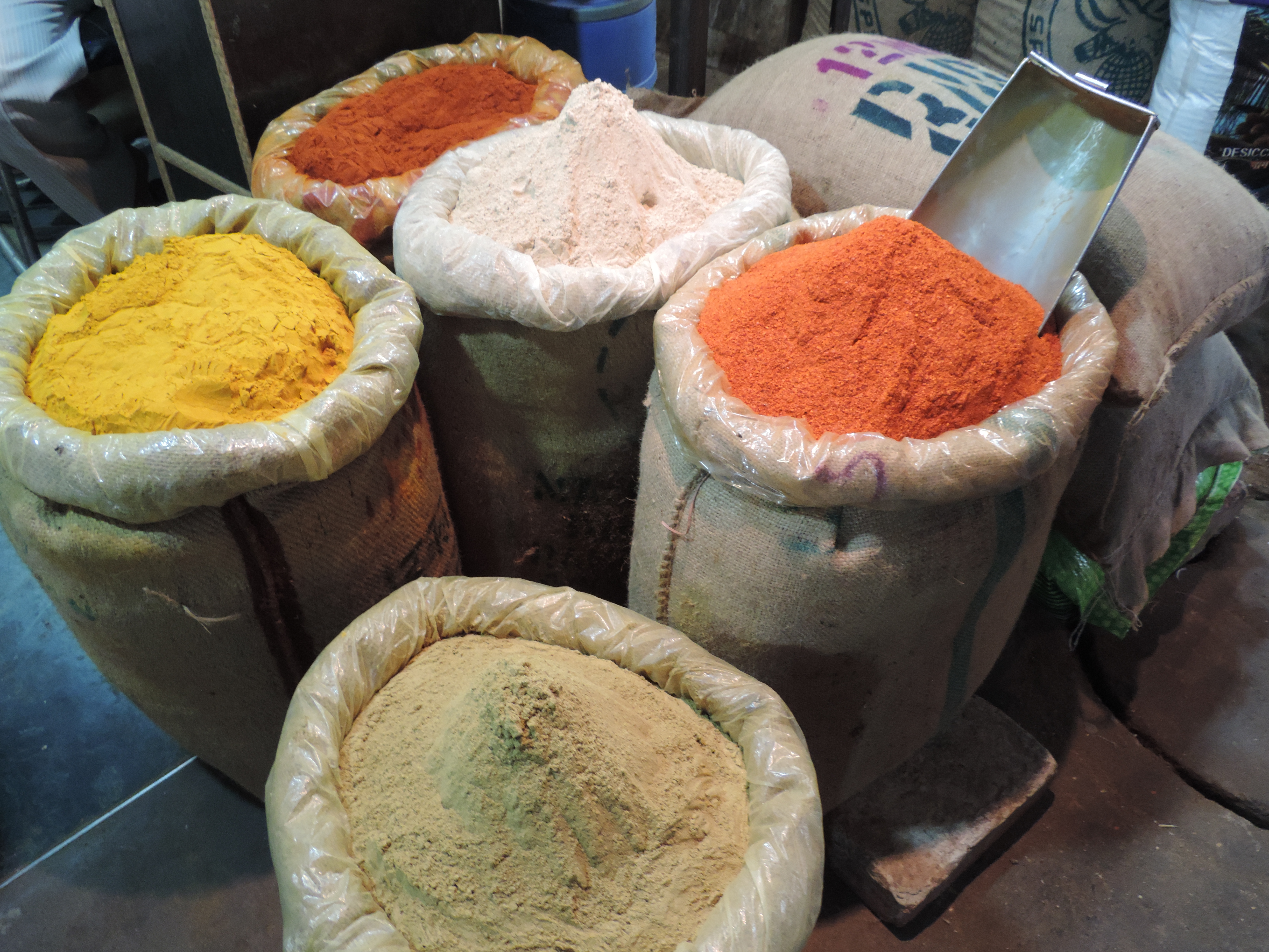 Chandni Chowk zit vol met groothandelwinkels, waar je van alles in bulk kunt kopen. Grote manden vol noten, pasta, rijst, thee, en dus ook kurkuma, chilipepers, paprikapoeder, garam masala en andere heerlijke poeders. Ik had niet heel veel geld bij me (foutje), en heb daardoor (gelukkig maar, denk ik) beperkt ingeslagen. Zo heb ik 200 gram kurkuma gekocht voor zo’n anderhalve euro – daar betaal ik in Nederland/Amerika zeker twintig euro voor. Een paar zakjes thee (lekker!), een mixpakketje met allerlei specerijen, saffraan… geweldig.