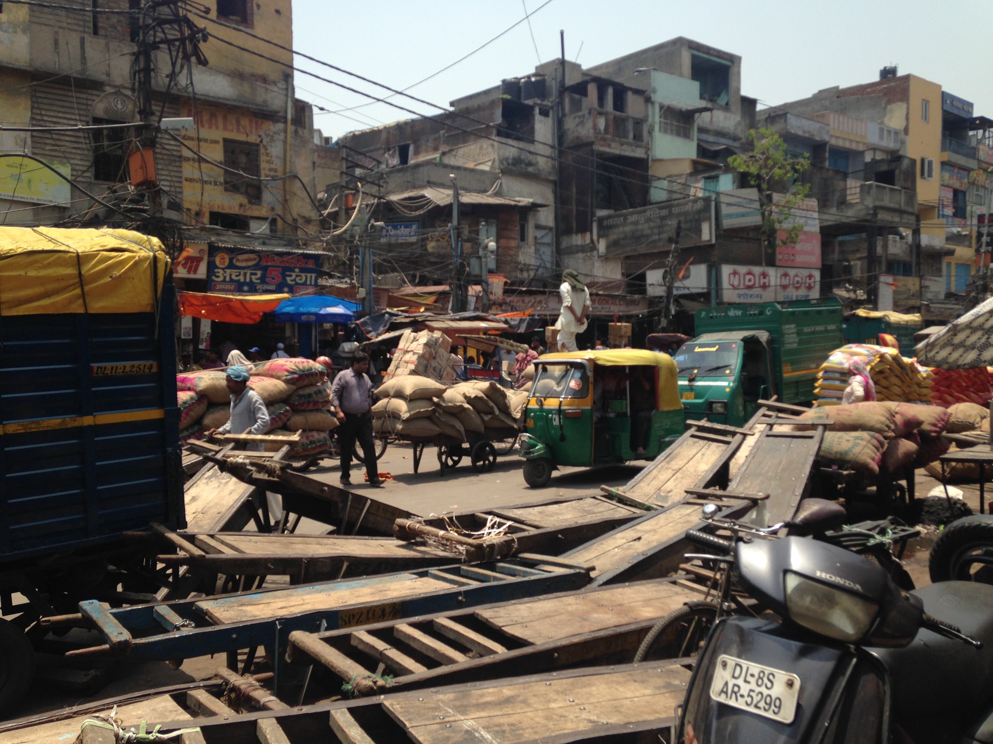 De grote uitdaging is het verkeer. Er is een continue opstopping van autoriskja’s (tuktuks), fietsriksja’s, karren al dan niet met kamelen of ezels, fietsen, dragers met grote zakken op hun hoofd. Omdat we het hele stuk moesten lopen, en de taxi niet verder kon, was dat even lastig, maar het is ons toch gelukt. We hadden een soort ‘loopsysteem’ ontwikkeld waarbij om de zoveel meter werd gecheckt op we iedereen nog bij elkaar hadden. Toch raakten we elkaar op een gegeven moment kwijt – gelukkig hadden we telefoons op zak.