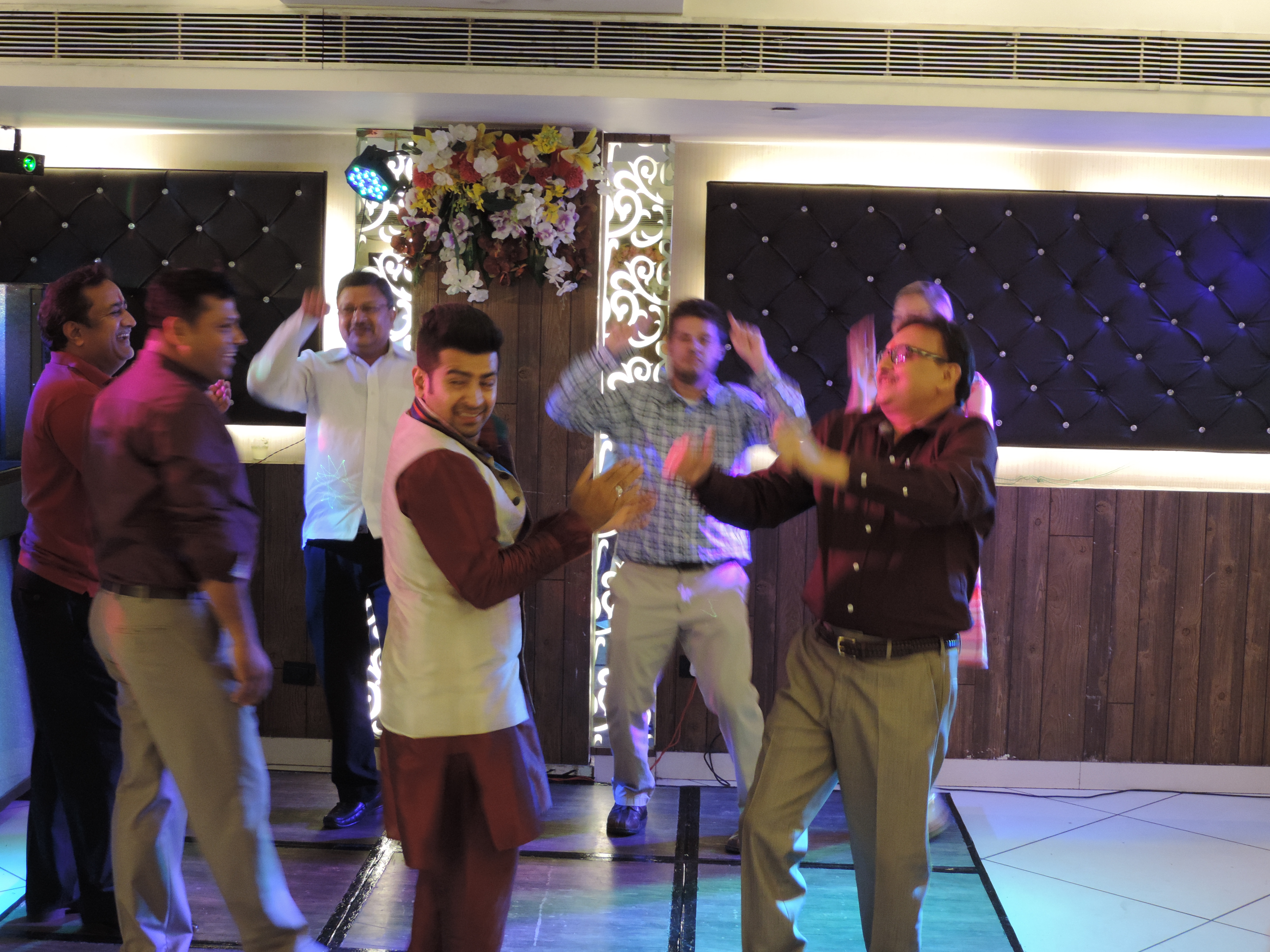 Verder was er nog een dansvloer met DJ, een buffet (met weer allerlei heerlijke dingen), en een bar waar bij uitzondering bier en zelfs whiskey werd geschonken. Dat laatste was overigens niet alleen voor ons westerlingen georganiseerd; ook Pranav’s neven lustten ook wel een borrel. Dat gezegd hebbende, een groot deel van Pranav’s familie drinkt niet, dat is nu eenmaal niet zo gebruikelijk in India.