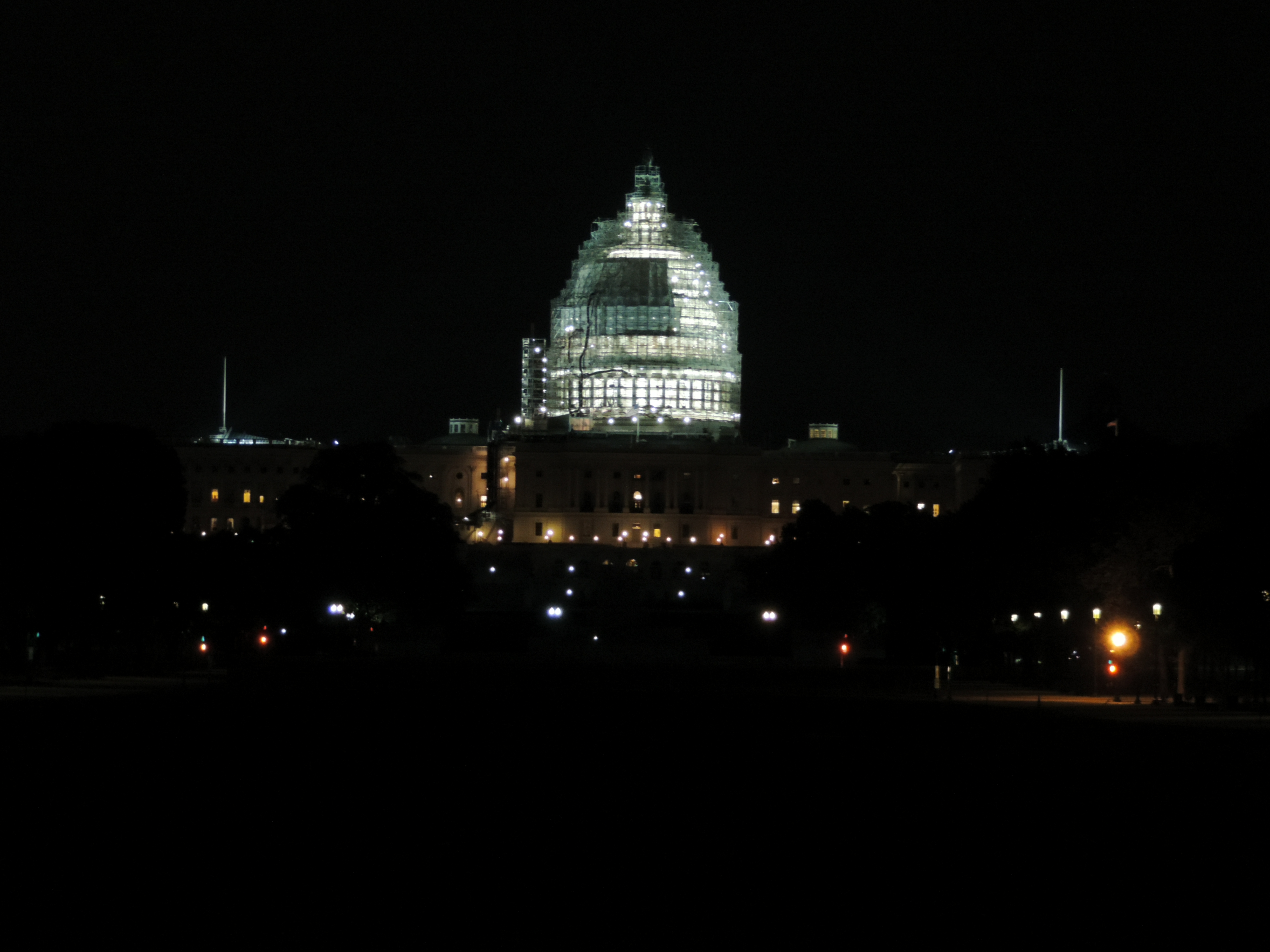 Na het tweemaal avondeten was het toch nog laat geworden en hebben we een aantal nachtfoto’s gemaakt van het Washington Monument (de ‘prikker’) en van de koepel van het Capitool (die momenteel in de steigers zit en daardoor heel kunstzinnig pixelachtig overkomt op foto’s). En vervolgens weer naar het hotel!