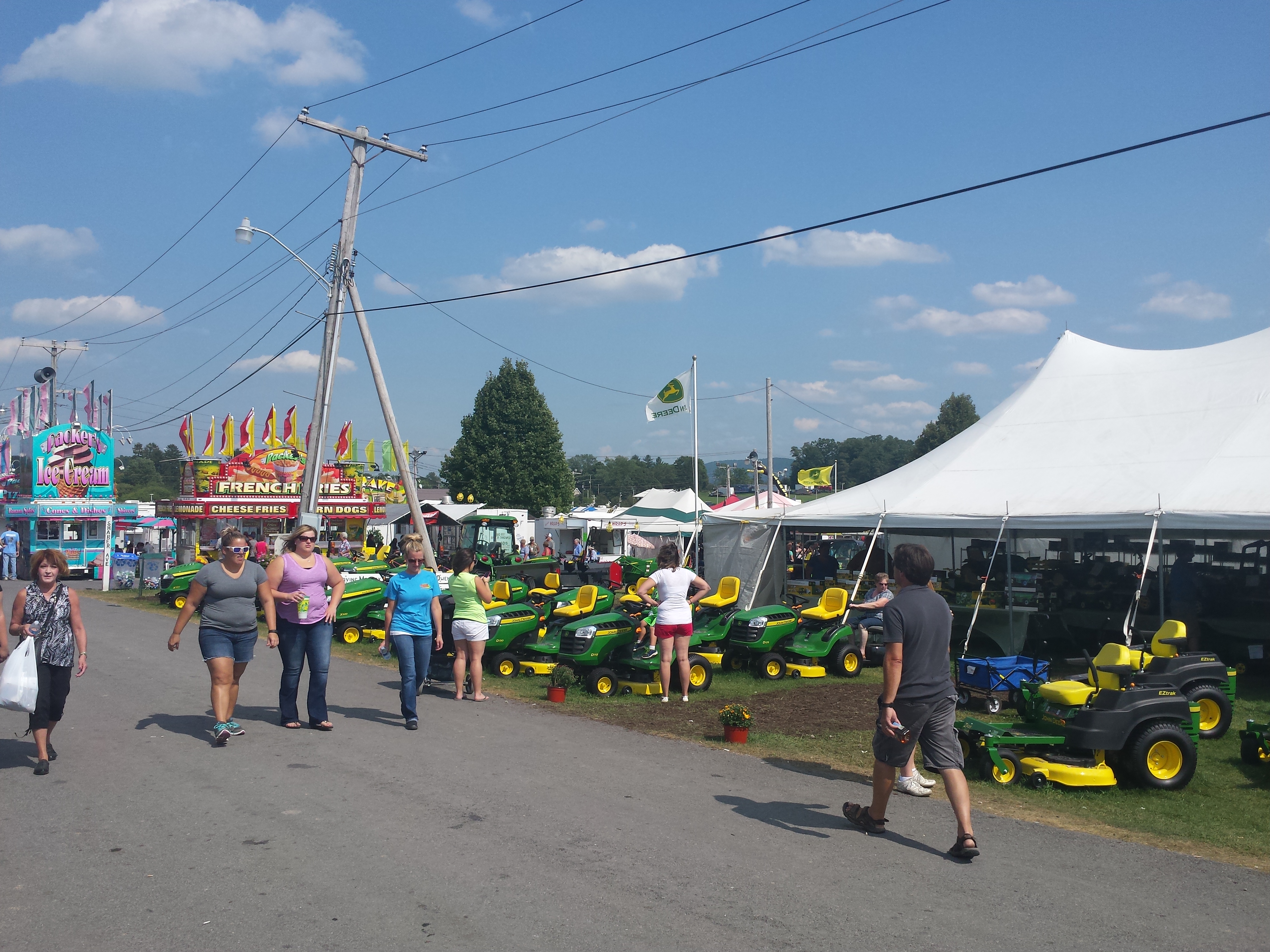 Zaterdagochtend had ik eerst een kappersafspraak. Die duurt heel lang (uuuuren). Toch hadden Michiel en ik daarna nog tijd om ’s middags even naar de Grange Fair te gaan in Centre Hall, net als vorig jaar. Food trucks (lekker), gezelligheid, tenten, heel veel agrarisch vertoon, vooral in het groen-geel van John Deere, de prijzen voor de mooiste appels/komkommers/tomaten van de regio… dat soort dingen. Heerlijk kneuterig, heerlijk plattelands, heerlijk gezellig. En het was heerlijk weer.
