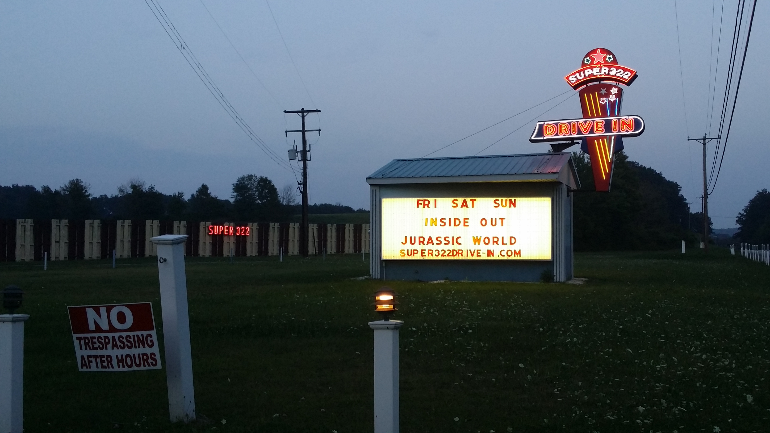 Aan het begin van het semester, nu het nog enigszins mooi weer is, zijn we naar de drive-in bioscoop geweest in het gehucht Woodland, achter Philipsburgh, zo’n 50 minuten van State College vandaan. Peter en wij reden vanuit State College, en Emma kwam vanuit Altoona rijden. Een Nederlander zou denken ‘bijna een uur in de auto voor een film? Gekheid!’ En dat klopt wel een beetje, maar dit was een speciale ervaring. Want dit was een drive-in bioscoop, zo’n echte ouderwetse Amerikaanse. Het is een langzaam verdwijnend fenomeen. In de jaren 50 en 60 waren er meer dan 4000 drive in bioscopen in Amerika; momenteel zijn er dat nog slechts 338… Die bij Woodland is ook zo’n ouderwetse drive-in.
