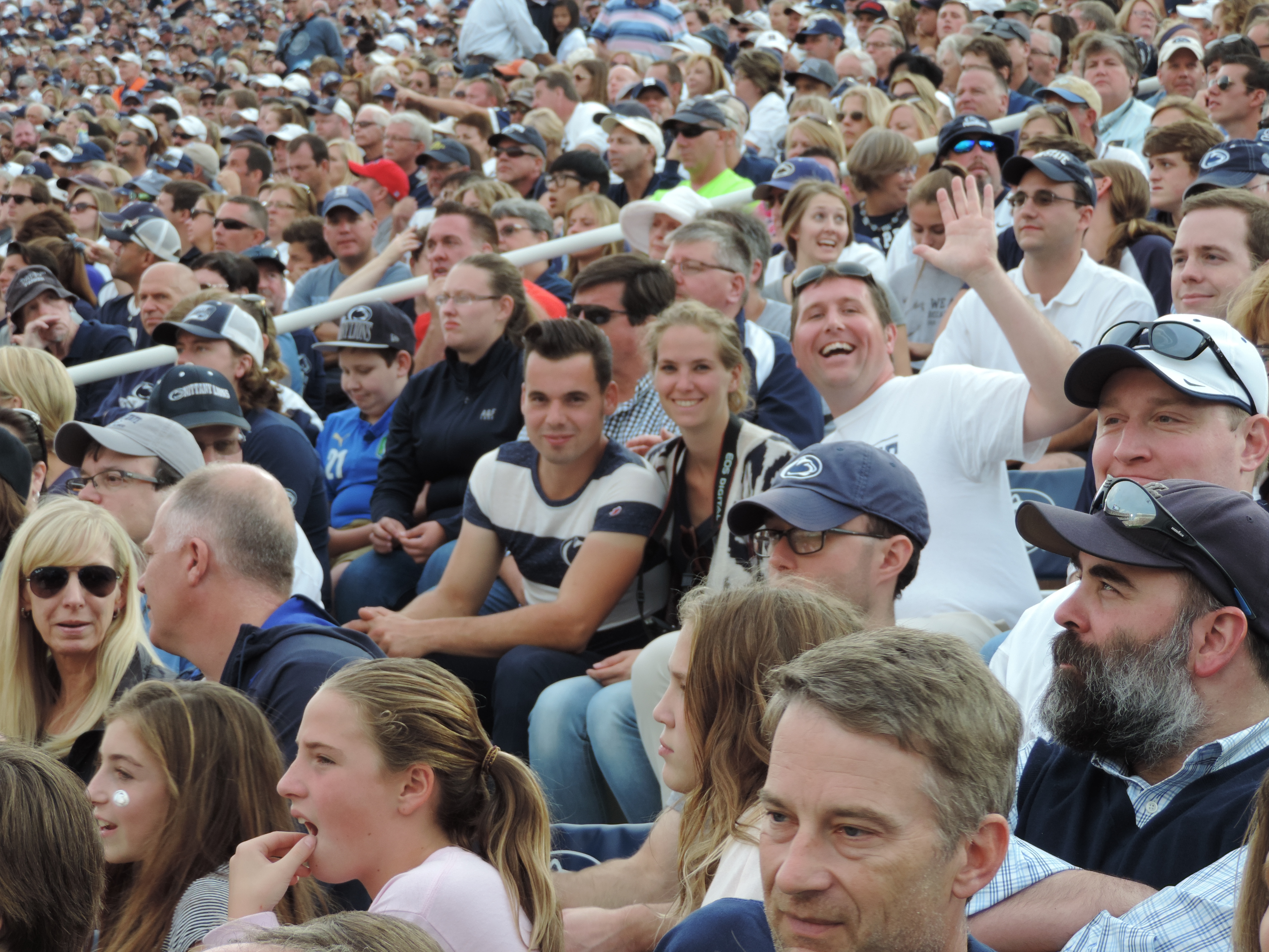 ‘Wij’ (de Nittany Lions) hebben de football wedstrijd gewonnen (tegen de San Diego State Aztecs). Het was nog spannend ook en bij vlagen ook nog spectaculair met onder andere een touchdown van een verdediger van dik 150 kilo zwaar (‘wat een papzak’ volgens Hendrieke – en dat klopte ook wel aardig…).