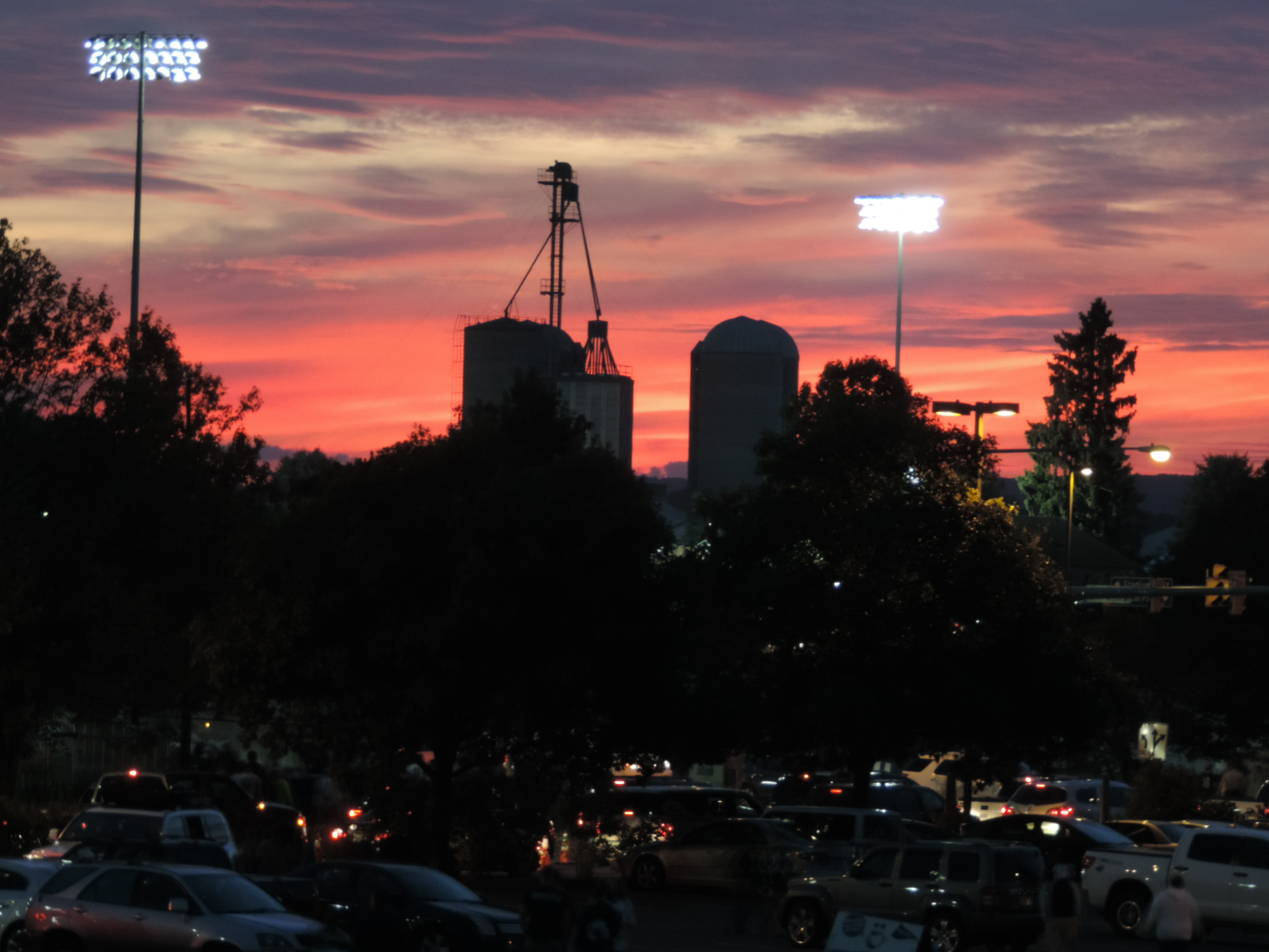 Want sohee, dat concept blijft toch verbazen. Je gooit de achterklep van de auto open, en daar komen dan vervolgens uit: klaptafels en klapstoelen, koelboxen, spelletjes, en eten – heel veel eten. Met ook nog eens een keer football-decoratie: tafellakens in de vorm en kleur van een footballveld, mandjes die doen alsof ze een football-doel zijn, en uiteraard papieren bekers en borden in de Penn State kleuren. Partytent erboven, en gaan met die banaan! Gezelligheid! Hendrieke en Robin hebben uiteraard nog corn hole gespeeld, hebben een rondje langs de tailgates gedaan, en hebben zich uitstekend vermaakt. Nu heb ik hier zelf helaas geen foto’s van – die staan op Robin’s camera…