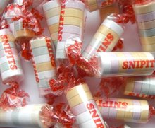 Je kent nog ze wel, ‘Snipits’, die snoeprolletjes van druivensuiker in een doorzichtige plastic wrapper. Die hebben ze hier ook, maar hier heten ze ‘Smarties’ (en Trivia-Steve heeft ze altijd mee naar de Skeller. Ik eet er altijd wel een paar…). Naast alle chocoladesnoepmini’s, worden deze snoeprolletjes vaak bij Halloween uitgedeeld.