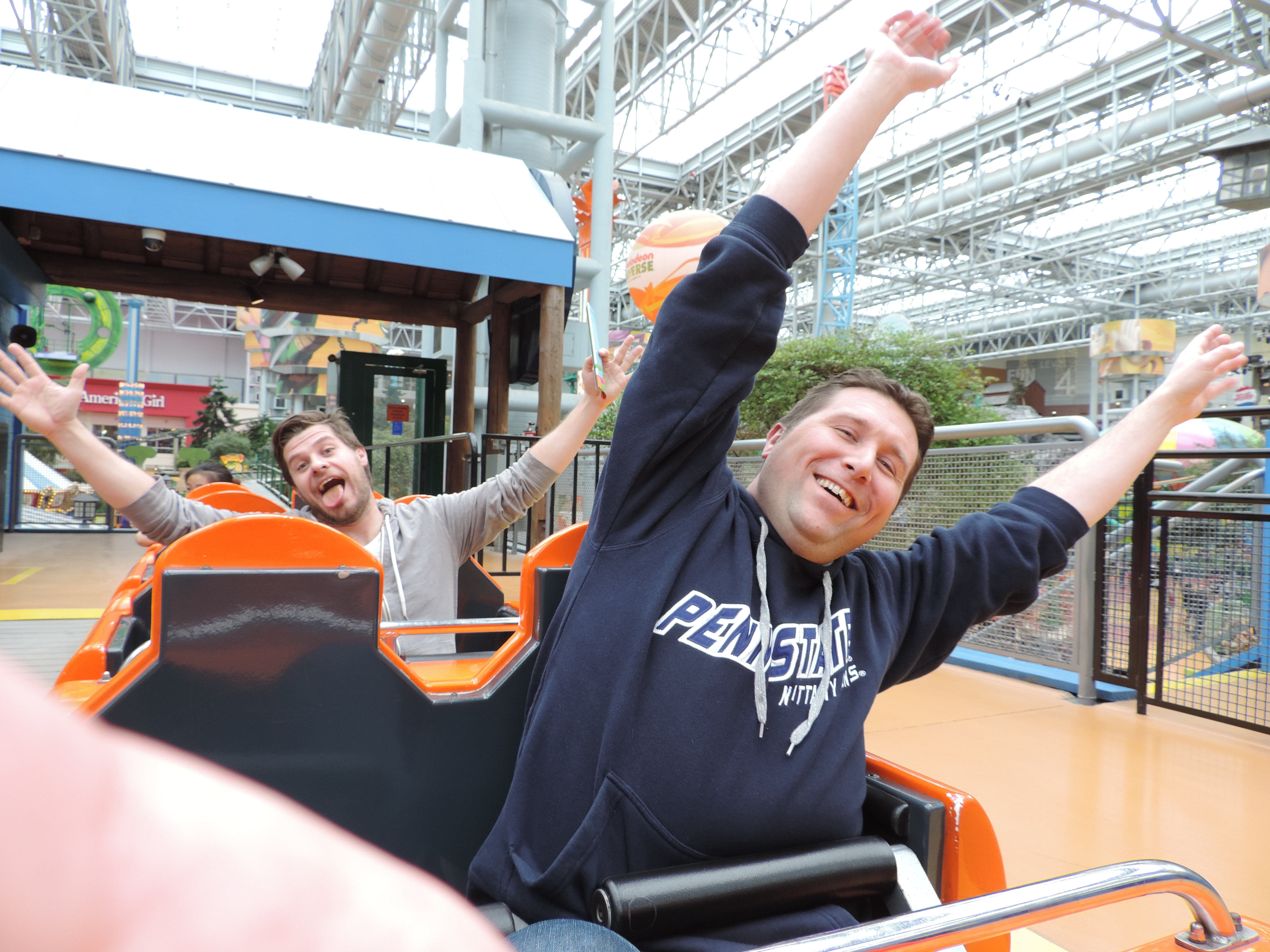 In het midden van het centrale blok zit een enorme Legowinkel met Legoland-bouwwerken, en – nog ongelooflijker – een pretpark in Nickolodeon-thema met allerlei attracties, compleet met reuzenrad, wildwaterbaan, schip, en meerdere achtbanen. Wij zijn ook nog in zo’n achtbaan geweest. Zie onderstaand filmpje. Het ging lang goed… totdat mijn camera op een gegeven moment compleet z’n focus verliest… Je ziet Michiel en Peter ergens rond de minuut voorbijkomen.