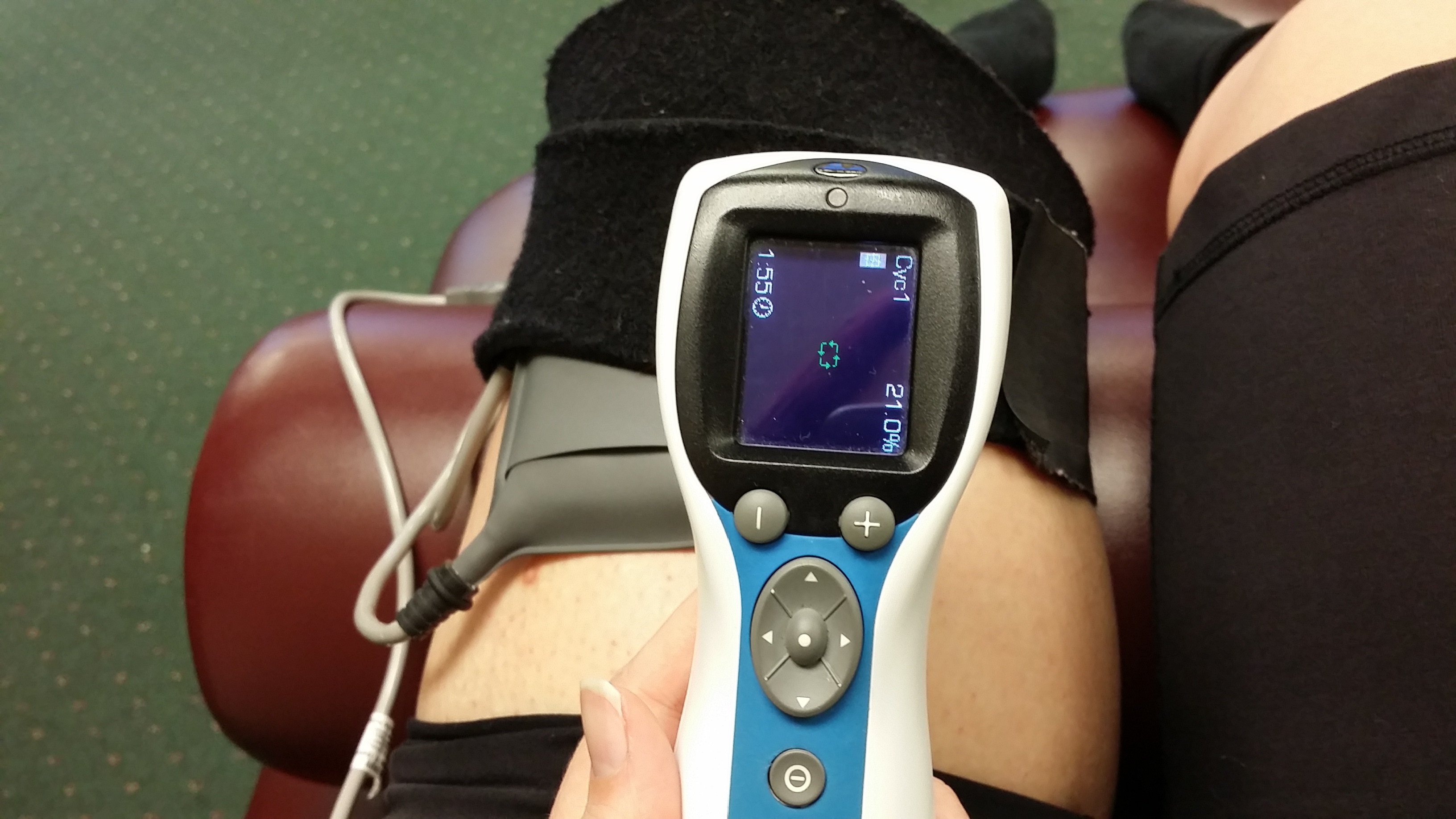Dat was vrijdag. Ik dacht dat mijn chiropractor zich op de ruggegraat concentreerde, maar hij weet meer… Hij wist me te vertellen dat mijn knieschijven niet helemaal in het lood lopen (dat wist ik dus al, maar mooi dat hij dat ook zag), en hij vertelde me dat dat misschien de reden was van de huidige pijn. Via een soort acupunctuur-zonder-naalden drukpunttherapie op mijn ribben, in mijn zij en op mijn hoofd zouden de twee bovenbeenspieren die het nu niet meer doen, weer geactiveerd worden.