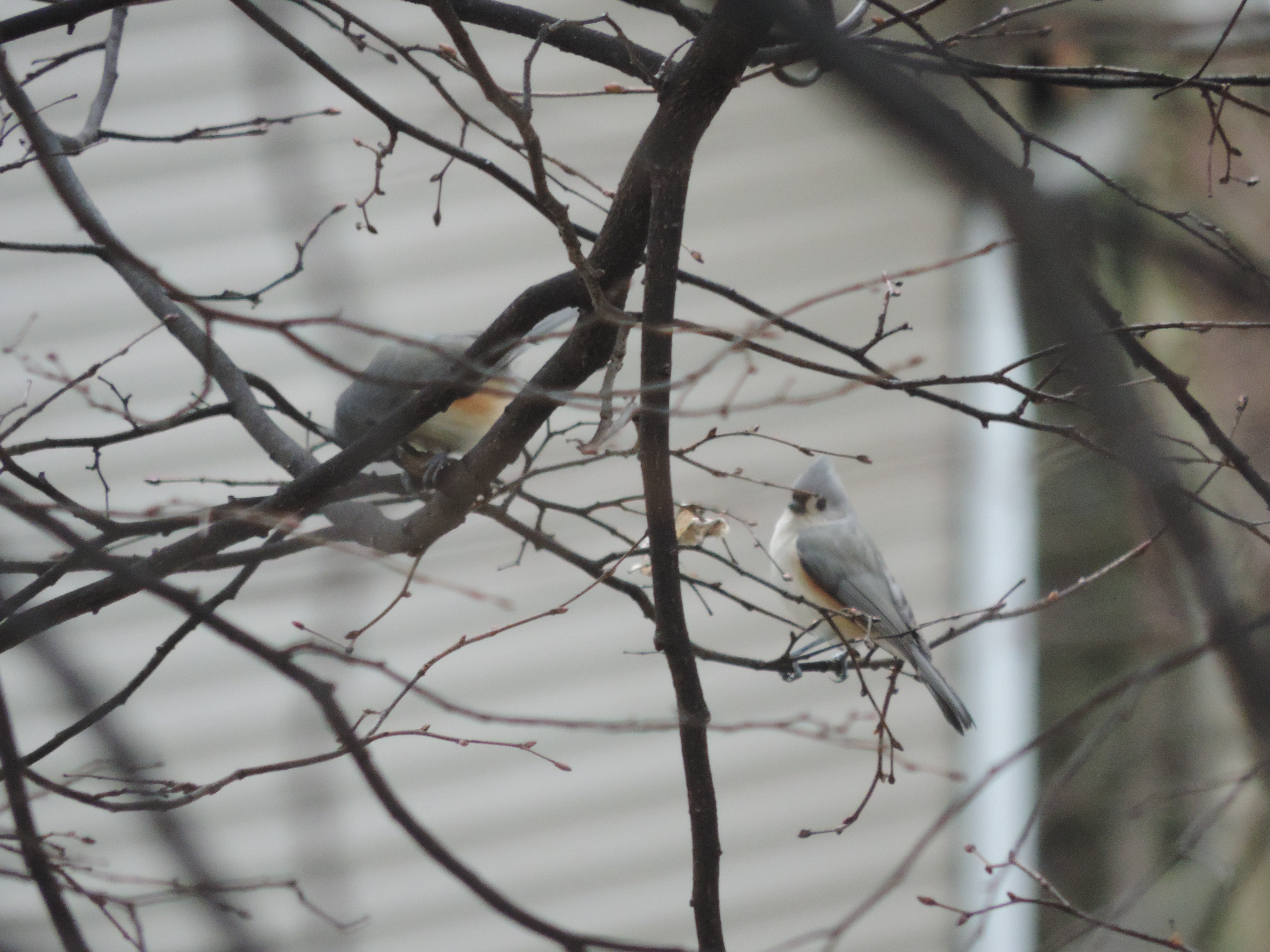 Een vogel die ik wel eens eerder heb gezien maar nog nooit goed op de foto heb gehad is deze: de ‘Tufted Titmouse’ (een soort kuifmees). Die vogels komen vaak in paren of kleine groepjes, zijn razendsnel en blijven niet goed stilzitten. Laatst had ik een nog steeds niet ideale situatie maar ik heb ‘m tenminste op beeld (en iets is beter dan niets). En zo kan ik ‘m tenminste identificeren.